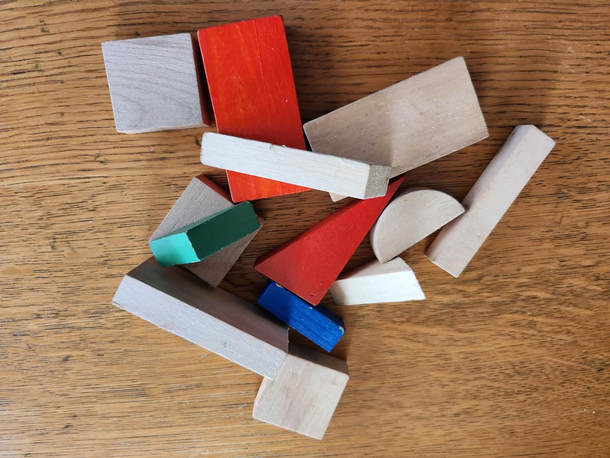 This auction lot is for a Small Plastic Bag of Wood Building Block Pieces. Great item for the tikes in your world. Can build lots of nifty items with these 13 pieces of finished wood.