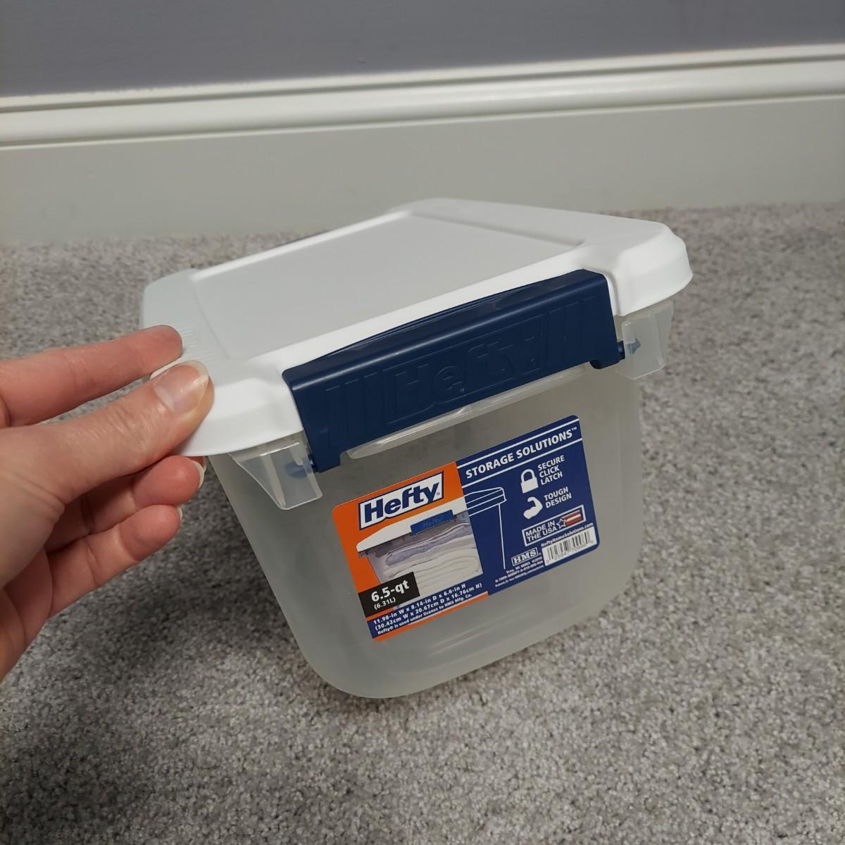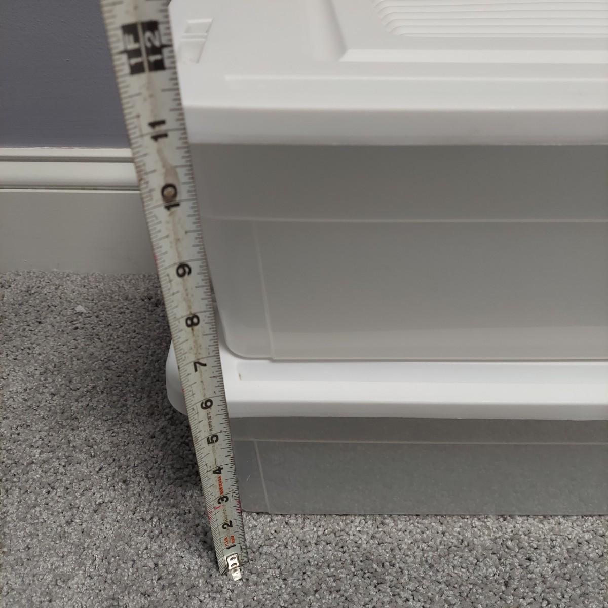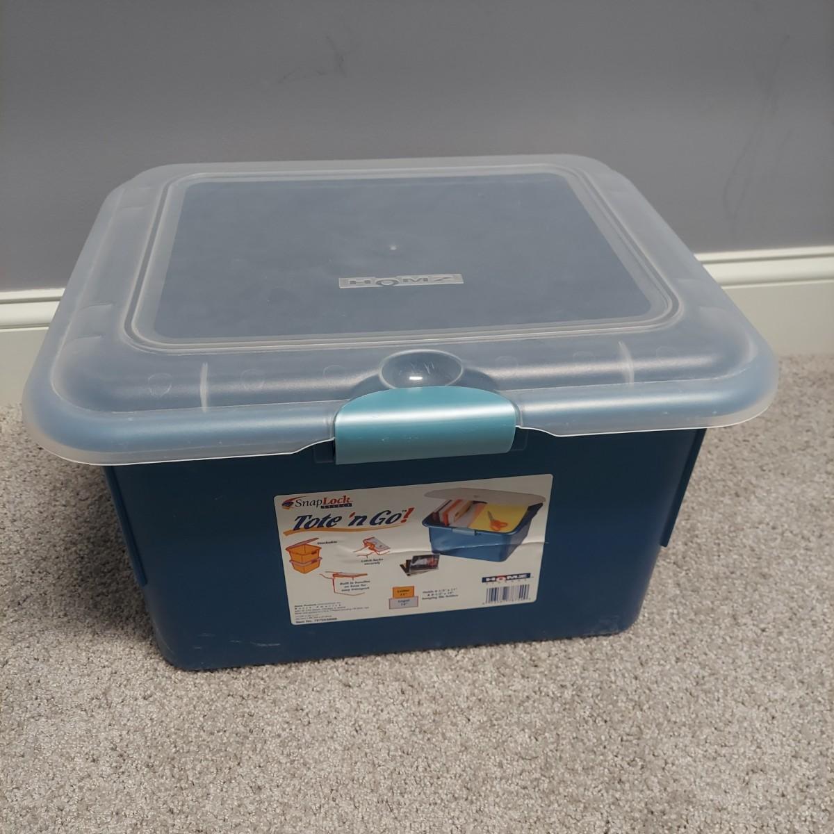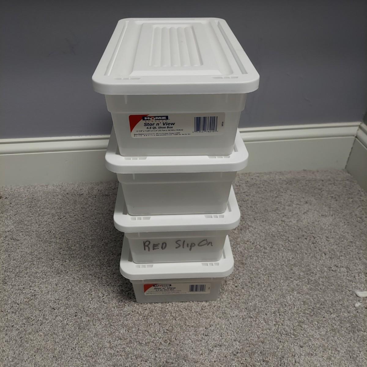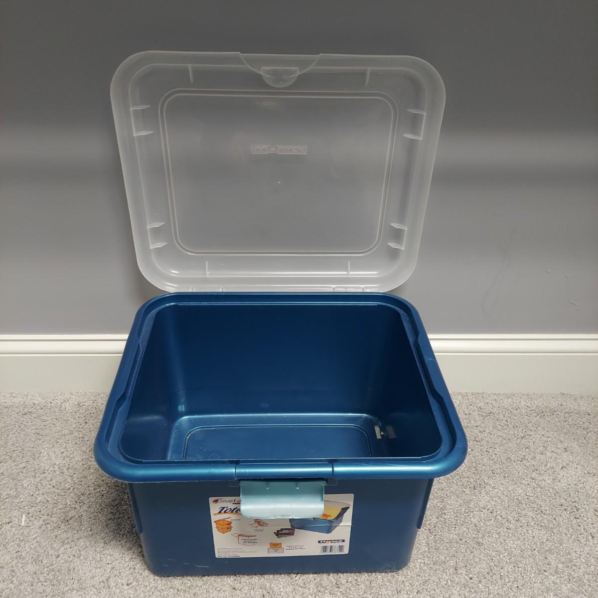 Fifteen small plastic storage bins that are mostly clear. In used condition. Some bins will need wiped out. Please see photos for brands, sizes and specific details. Local Pickup Only
