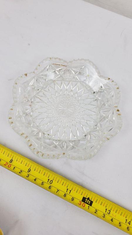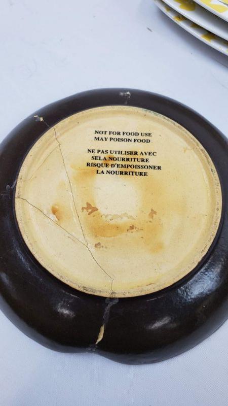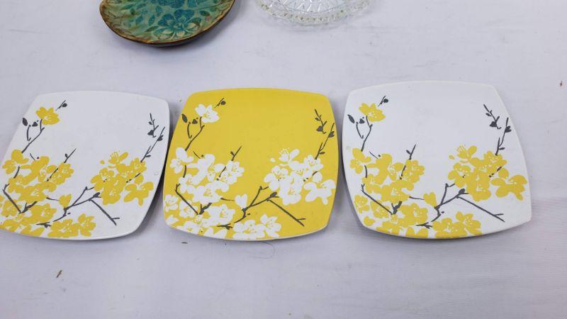 Small Plates, 3 Yellow & White Square, 1 Display (Broken/Fixed), 1 Glass Dish