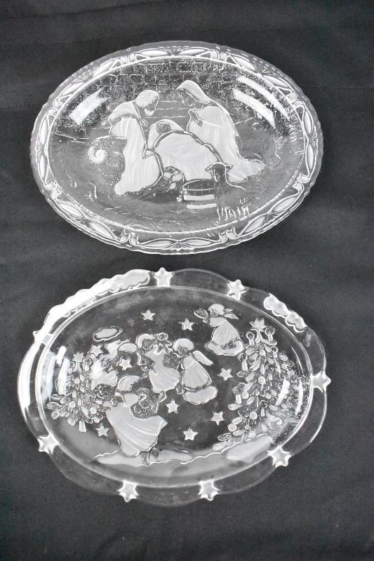 Small Platter Plates: Etched/Cut Glass Holiday Christmas: Nativity, Angels/Trees