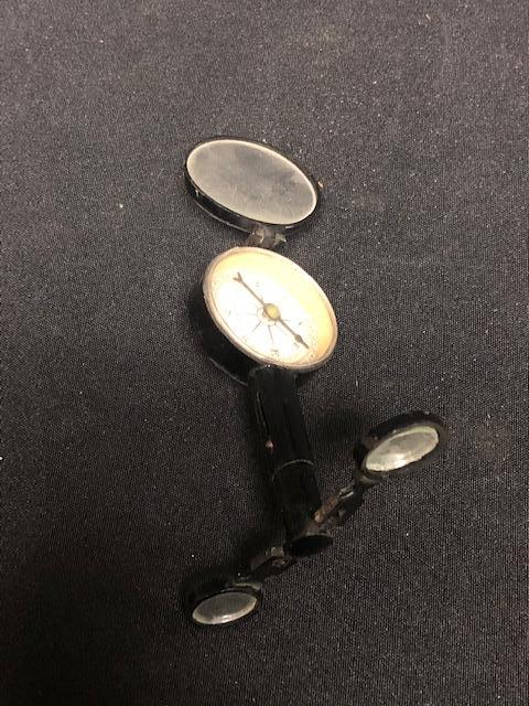 Small, pocket size compass with built in magnifying glasses. Age unknown. Bavaria is written on the face.