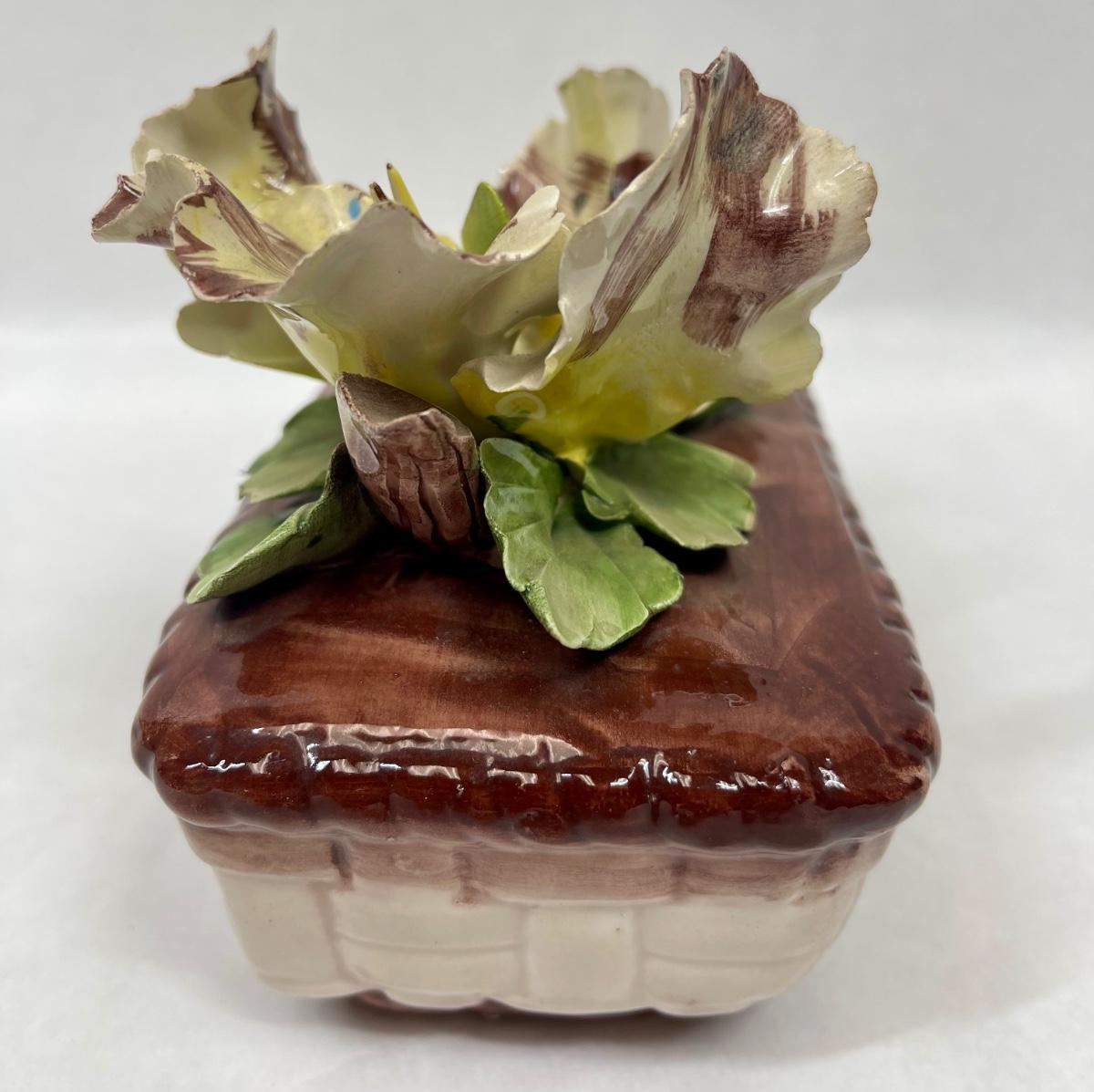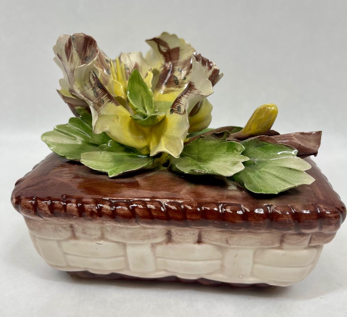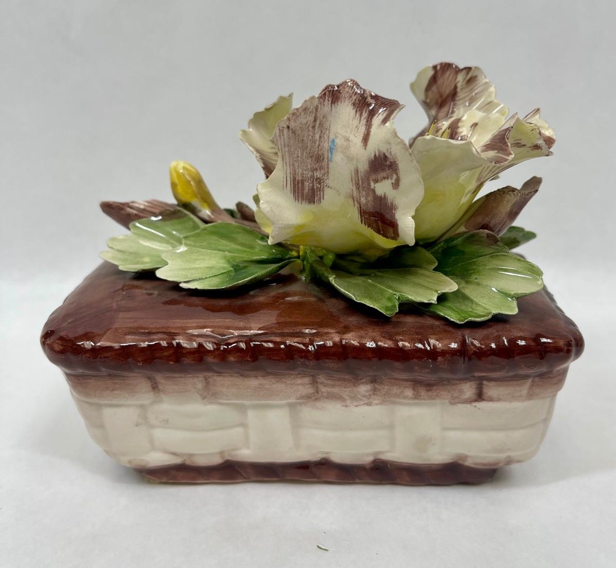 4” x 6” figurine in good condition, but does have a few small chips on flower petal edges. The chips blend in well and could be mistaken for the fold of a petal.