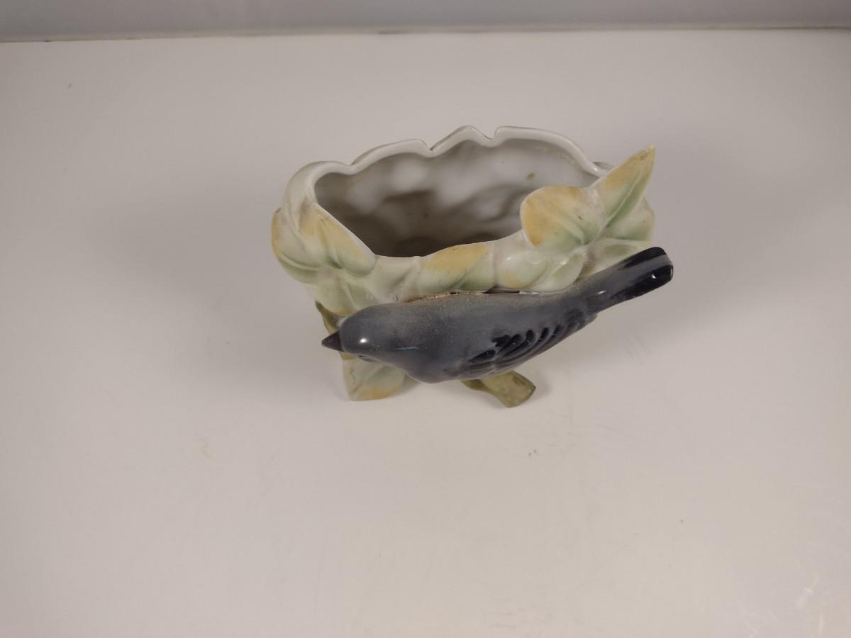 Small, Porcelain Planter with Bird Design.