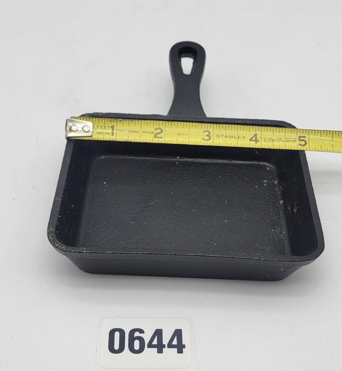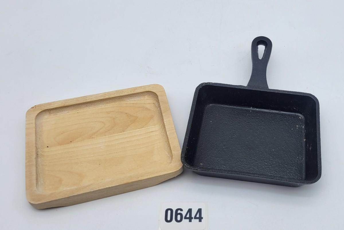 For those with the little appetites, this preseasoned skillet is for you! See photos for dimensions. This will come with a wooden trivot (or is it a tiny cutting board - for your small game).