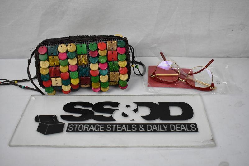 Small Purse Woven/Beaded & Fashion Glasses Red/Gold by Pomellato - New