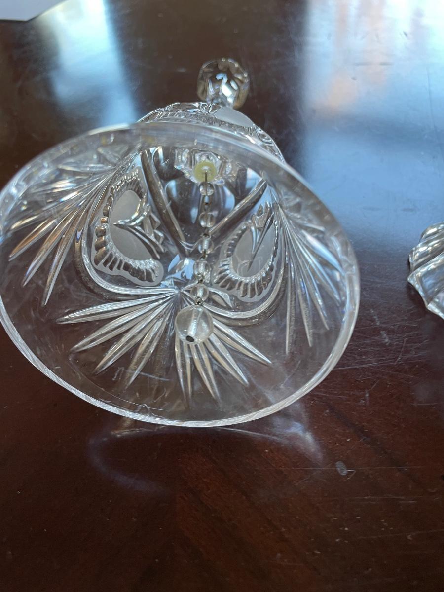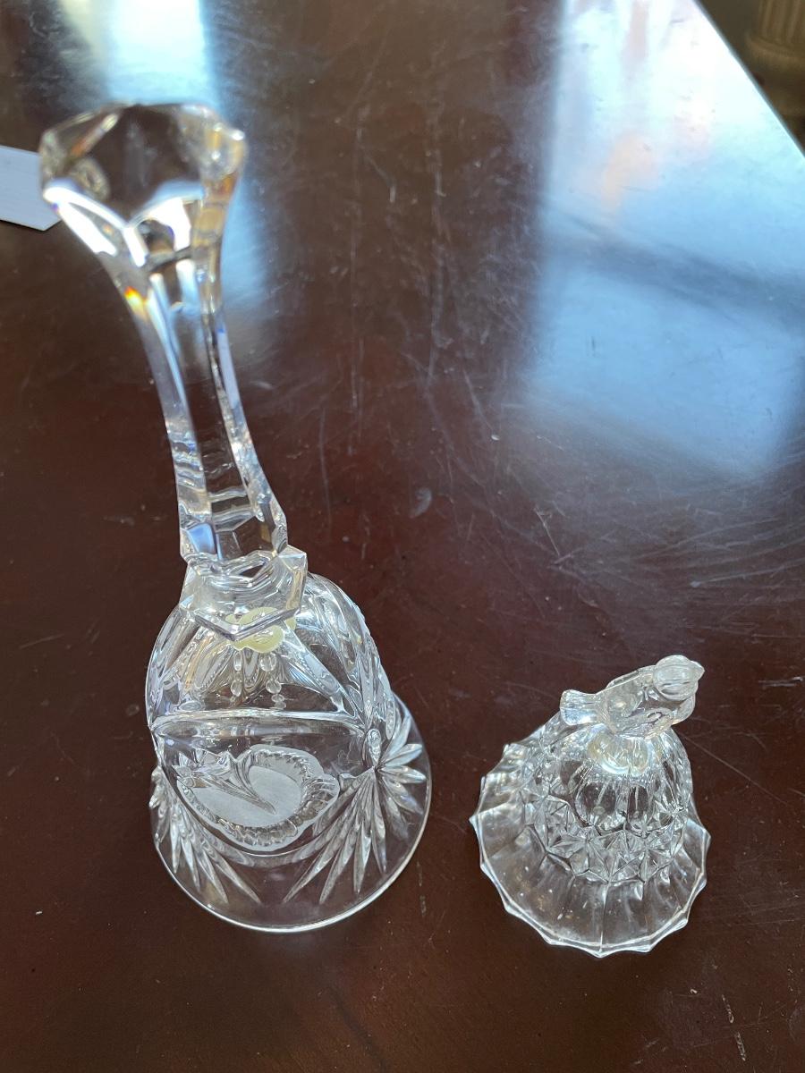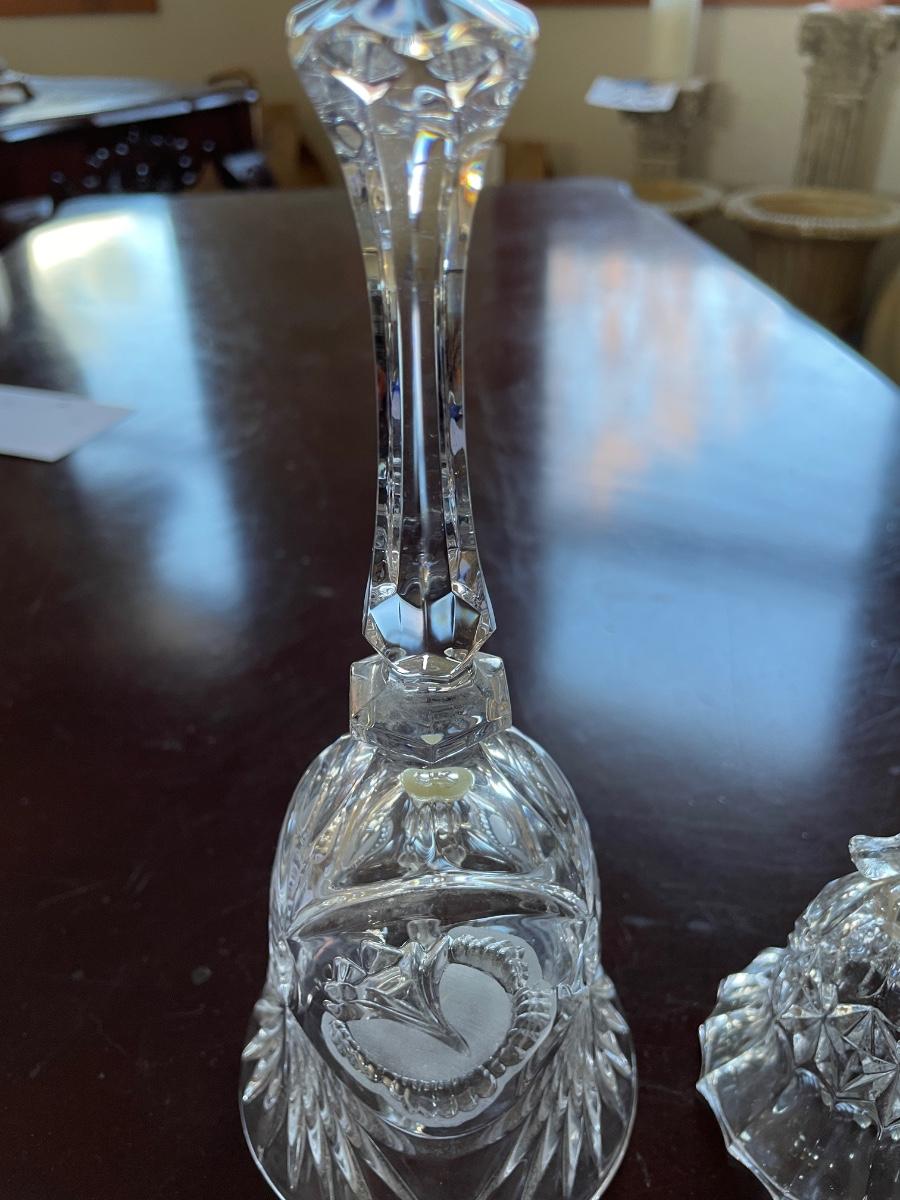 SMALL QUARTZ MANTEL CLOCK, ONE LARGE LEAD CRYSTAL BELL
