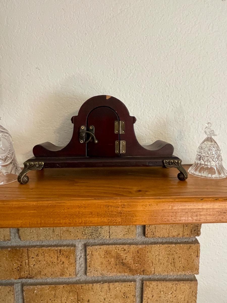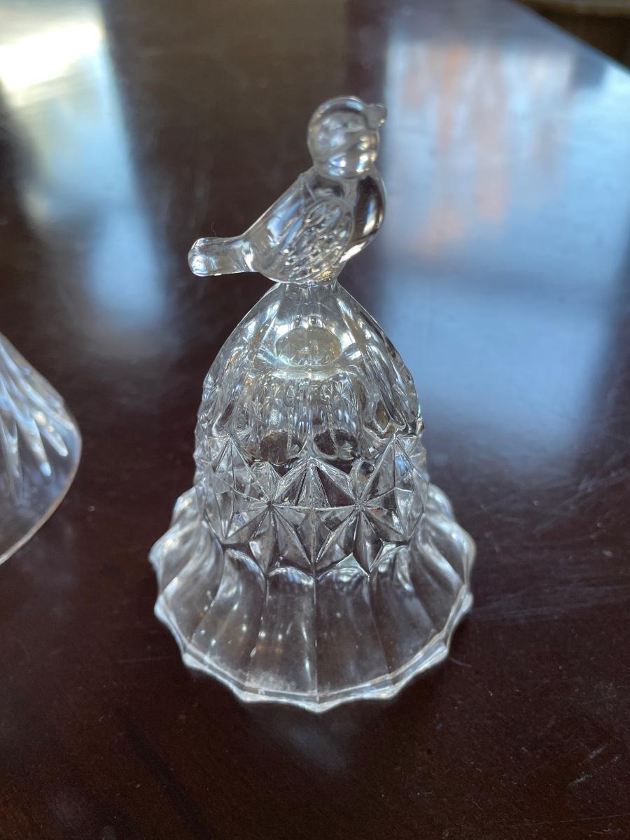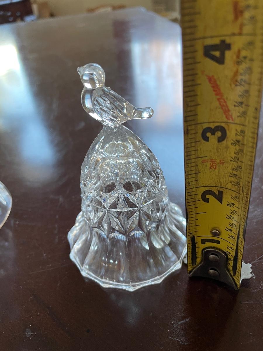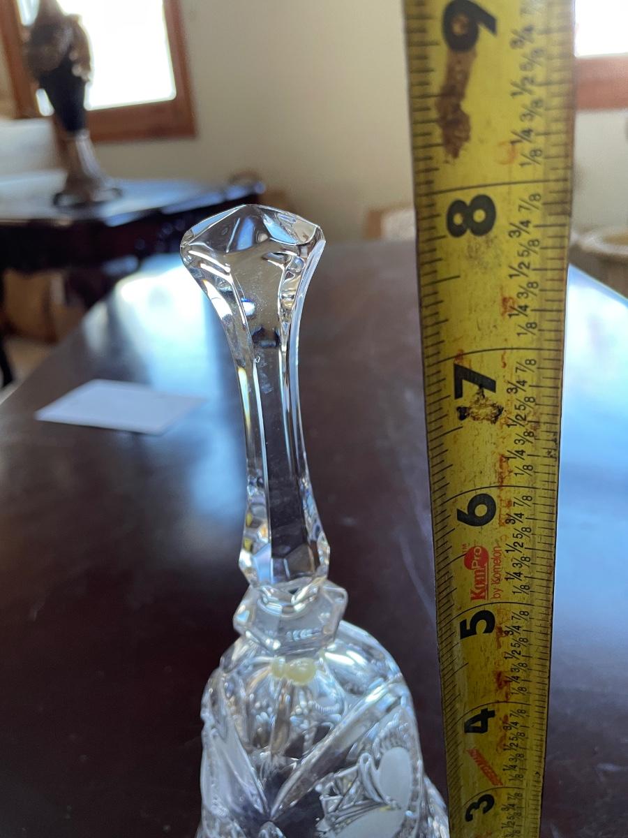 SMALL QUARTZ MANTEL CLOCK, ONE LARGE LEAD CRYSTAL BELL