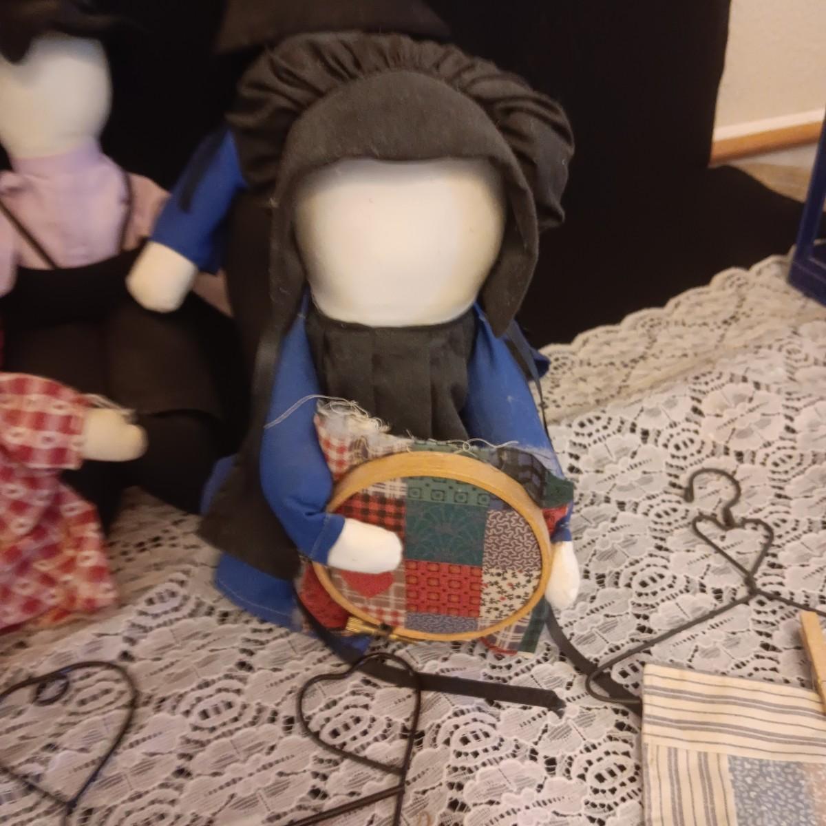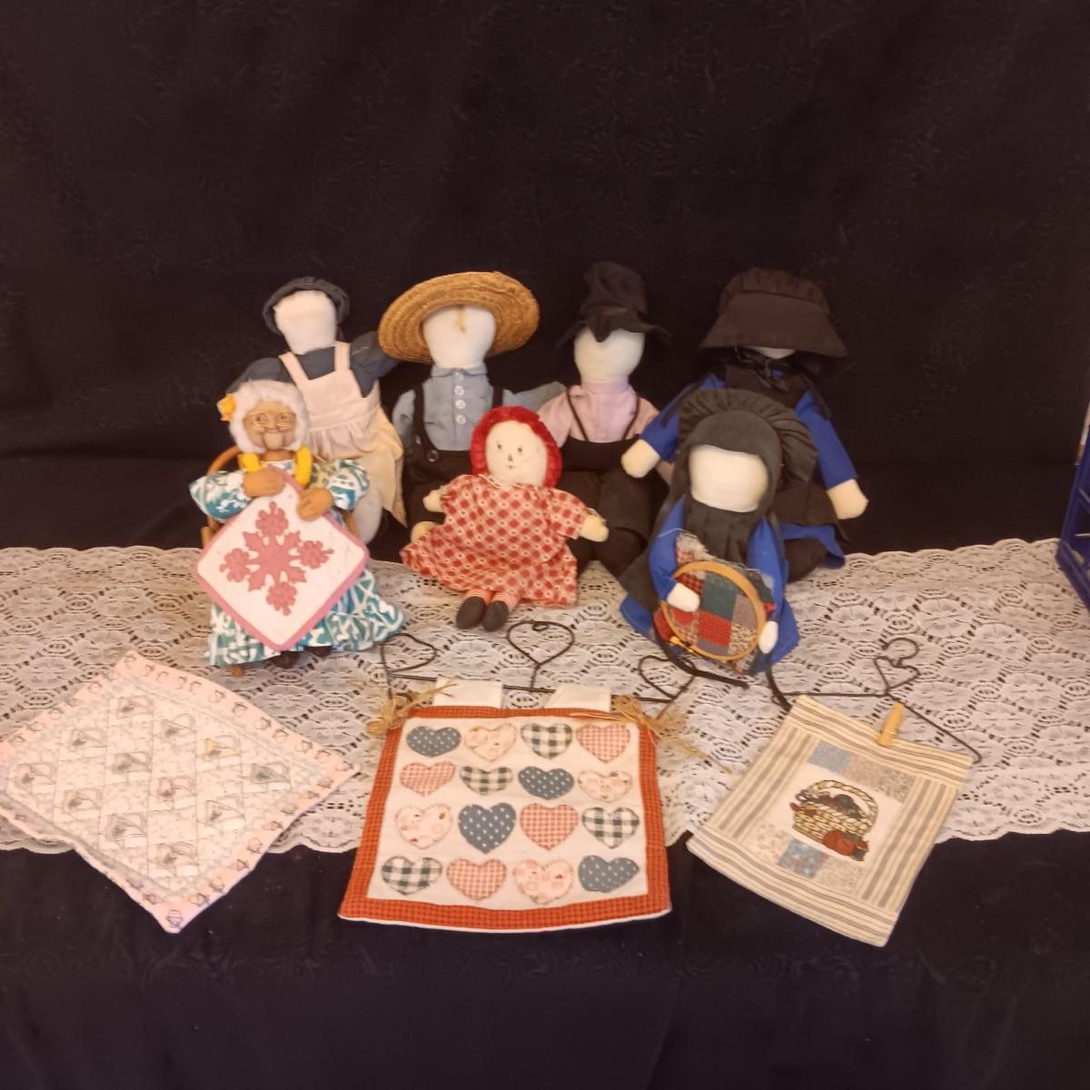 SMALL QUILTED WALL HANGINGS AND SOFT AMISH DOLLS