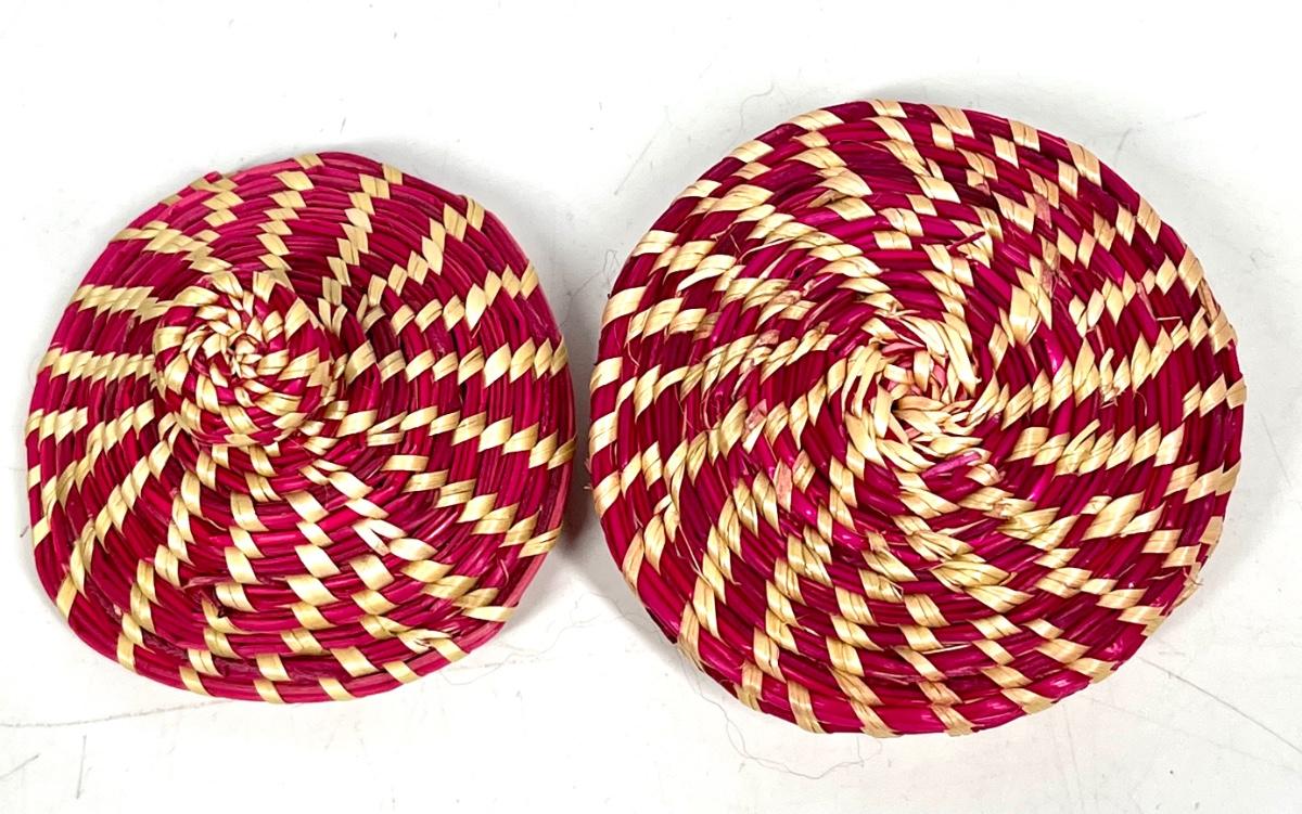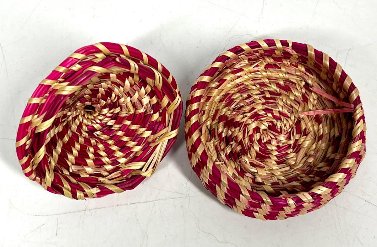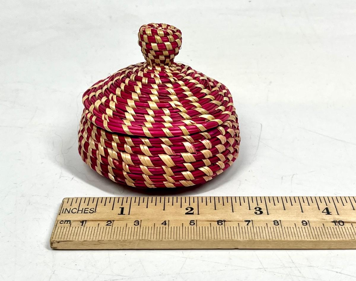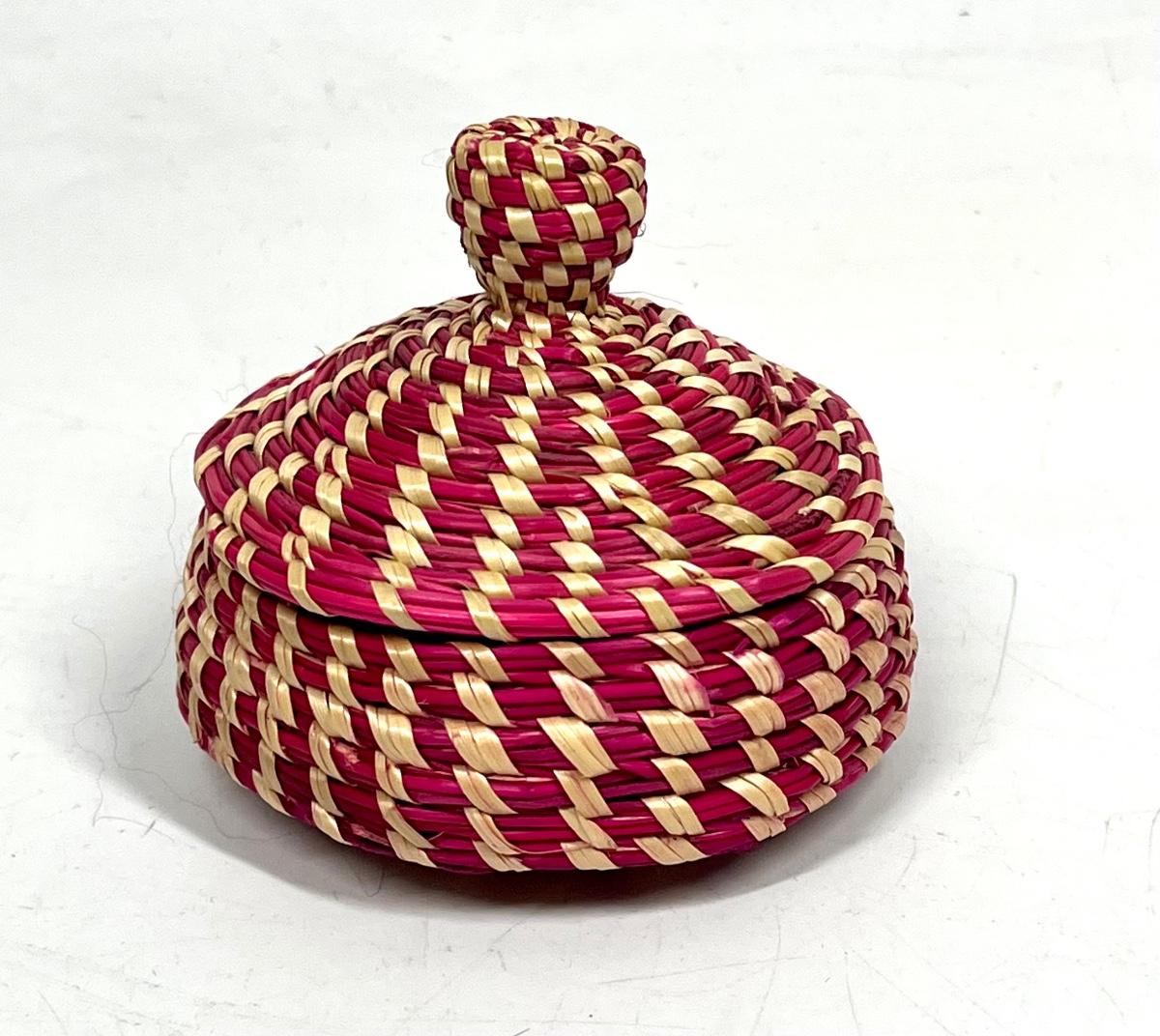 Small Rafia Reed Woven Trinket Box with Lid. In good condition.