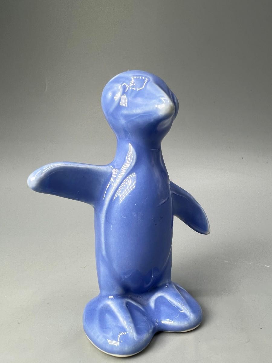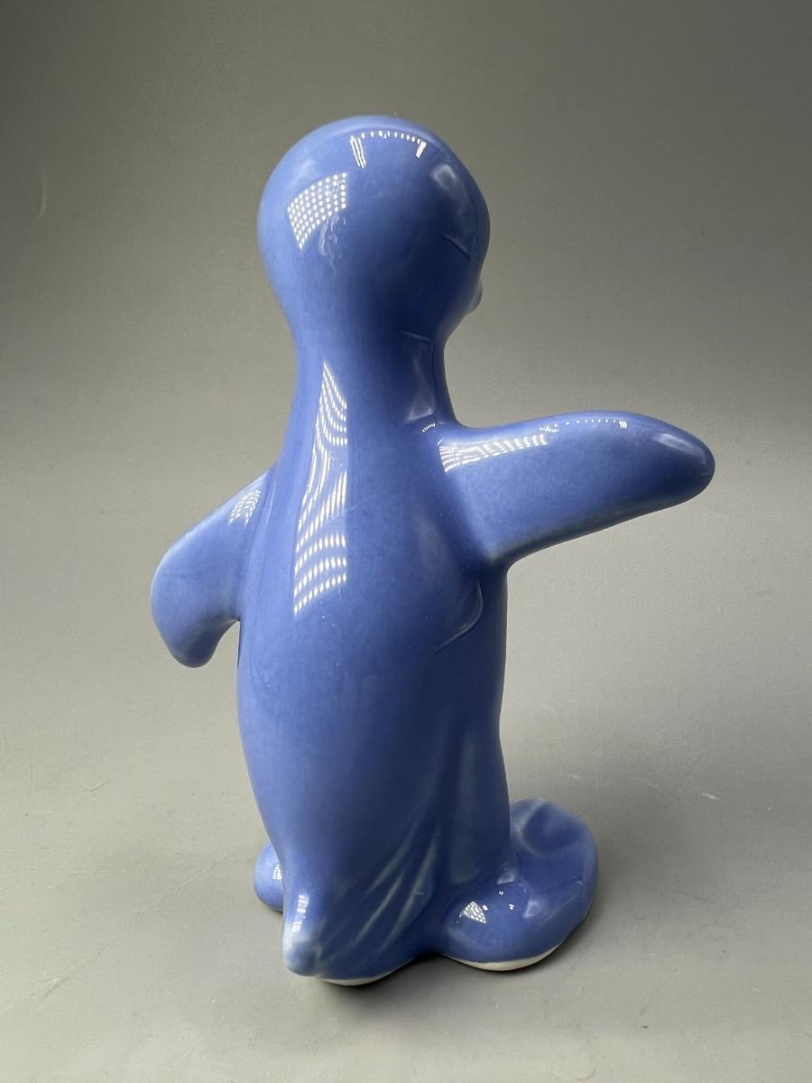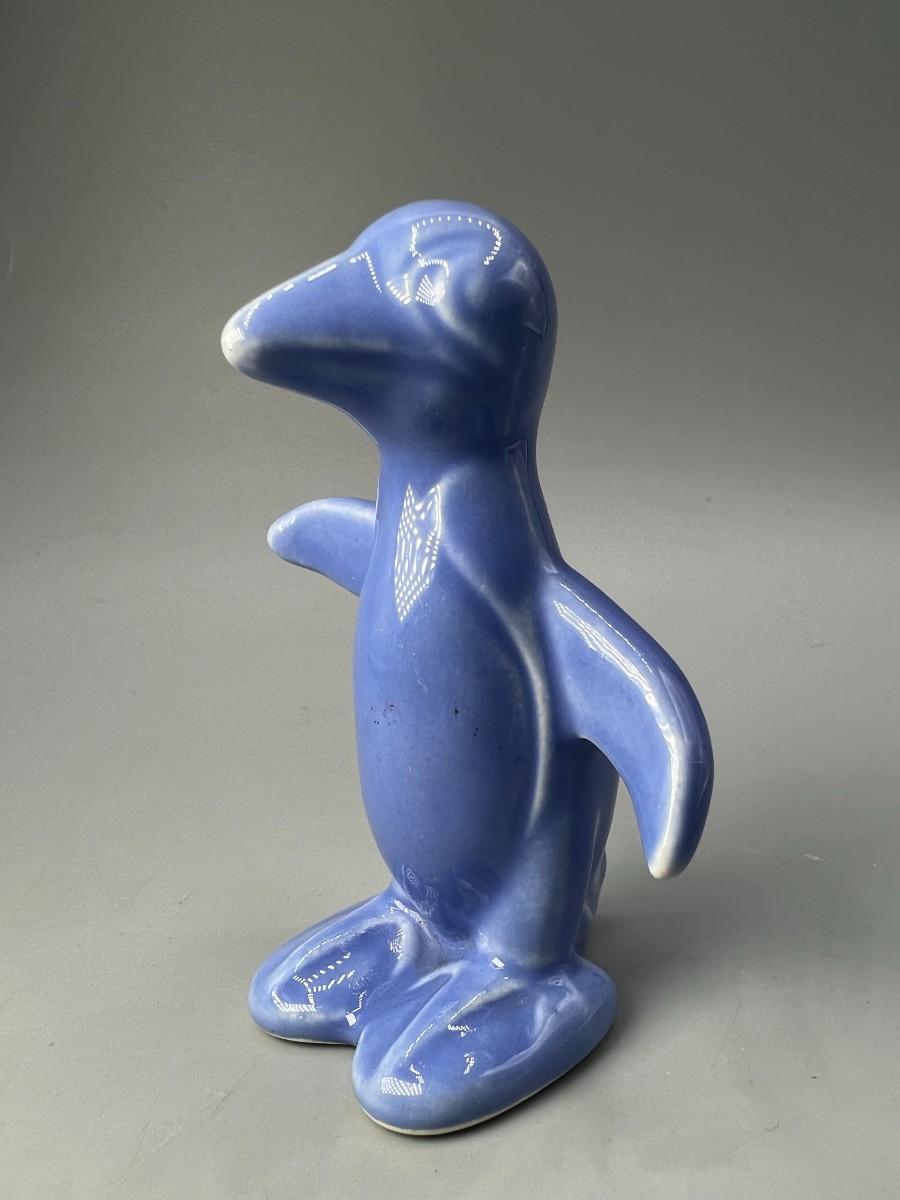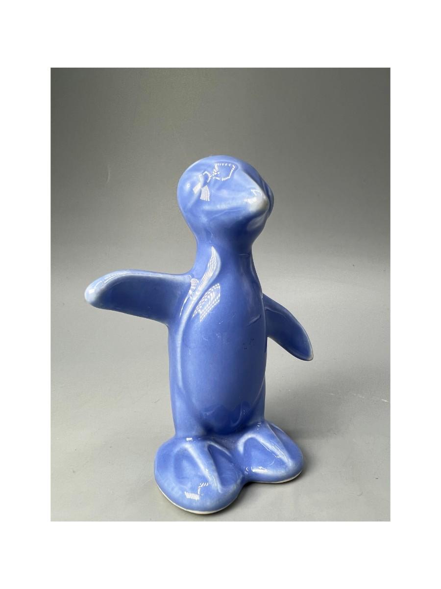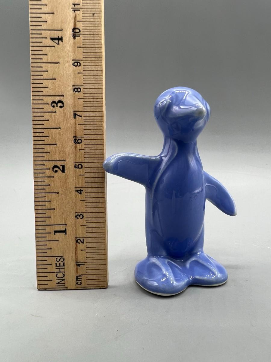 Small Retro Blue Ceramic Penguin Figurine