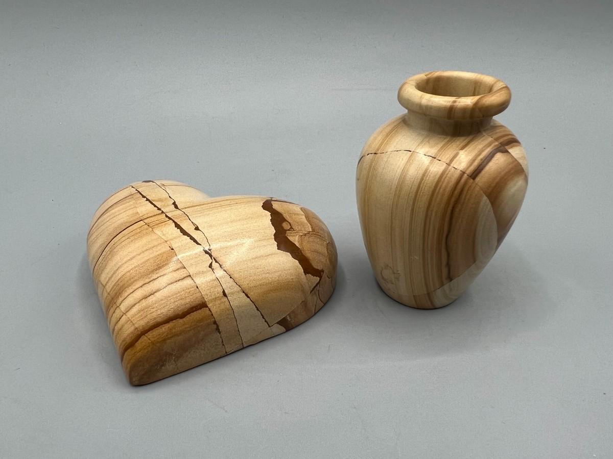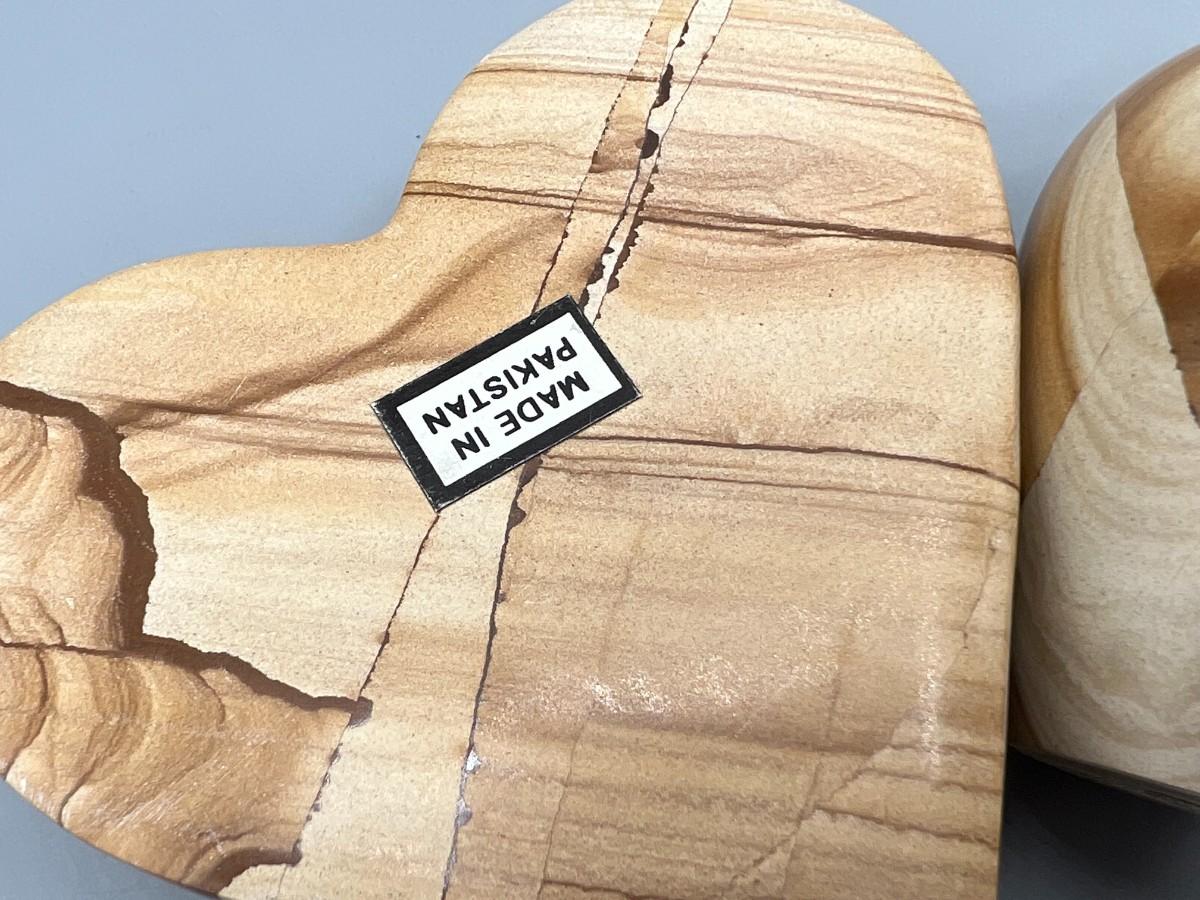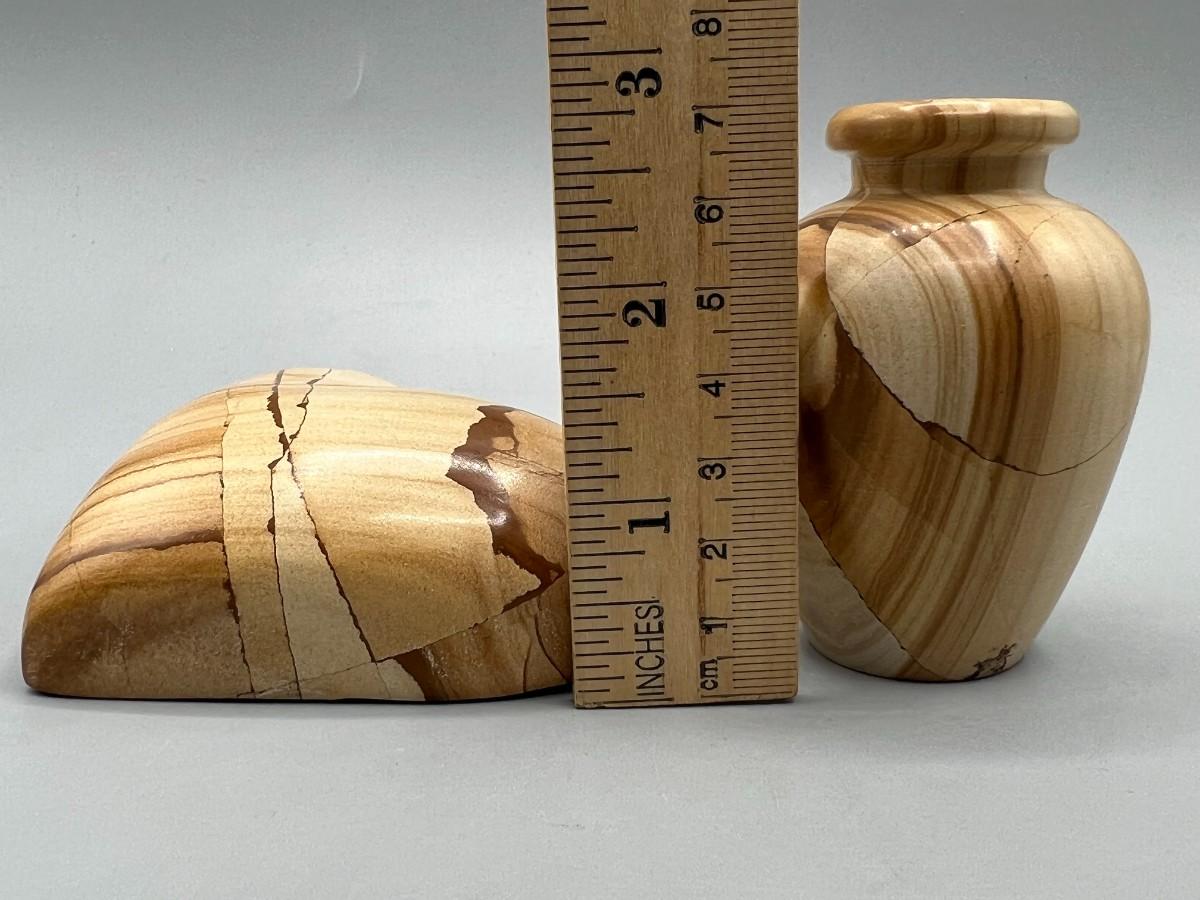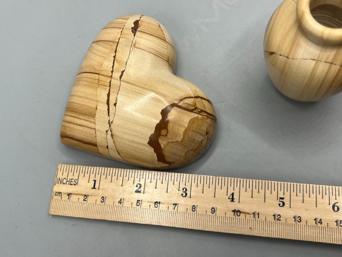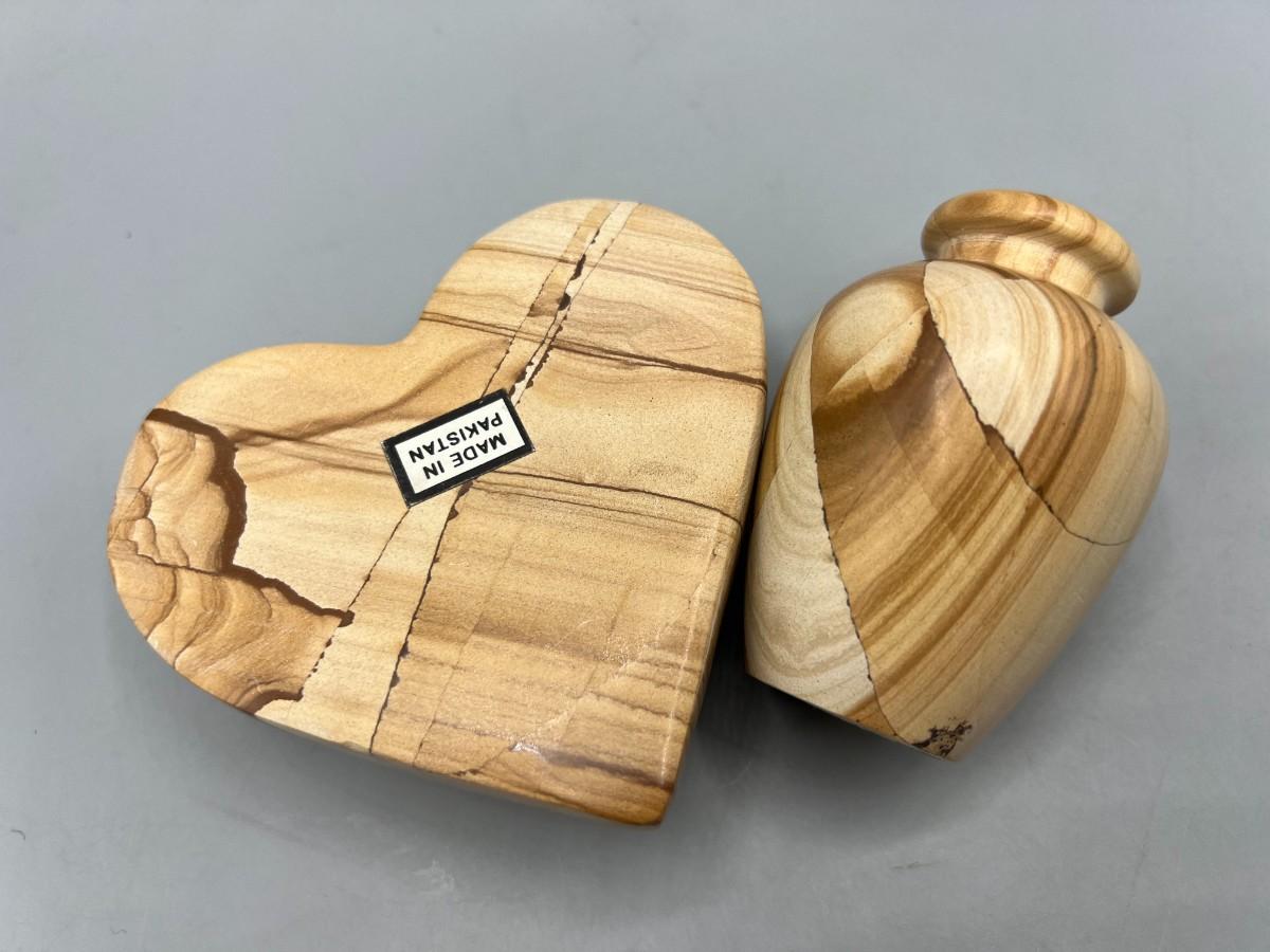 Small Retro Made in Pakistan Marble Wood Style Heart Paper Weight & Decor Vase