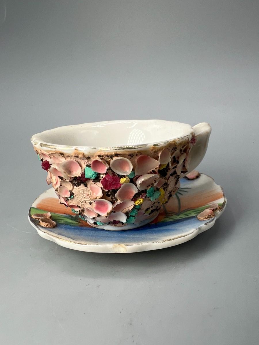 Small Retro Seashell Flamingo Florida Souvenir Tea Cup & Saucer