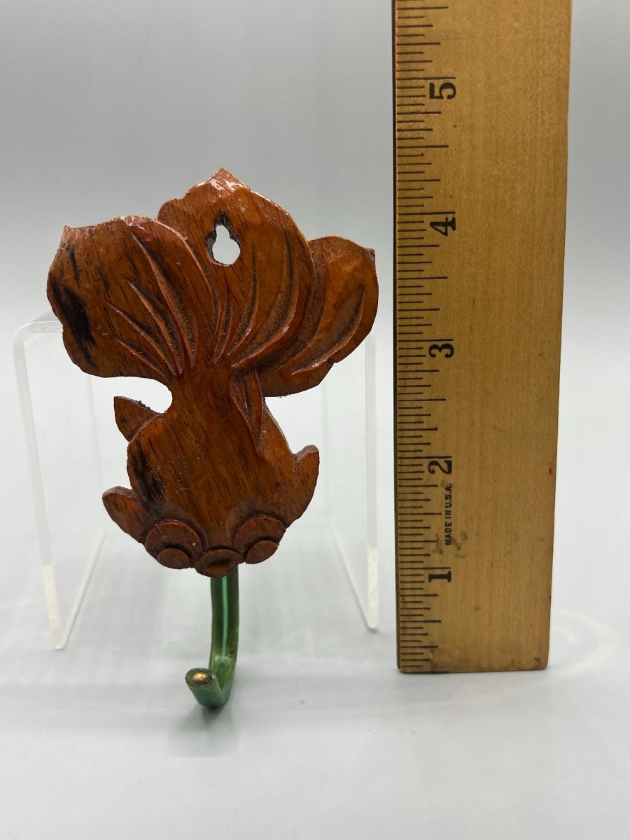 Small Retro Wood Carved Metal Wall Hanger, there is no significant damage to the wall hanger and is in good useable condition. Check pictures for more details and for sizing.