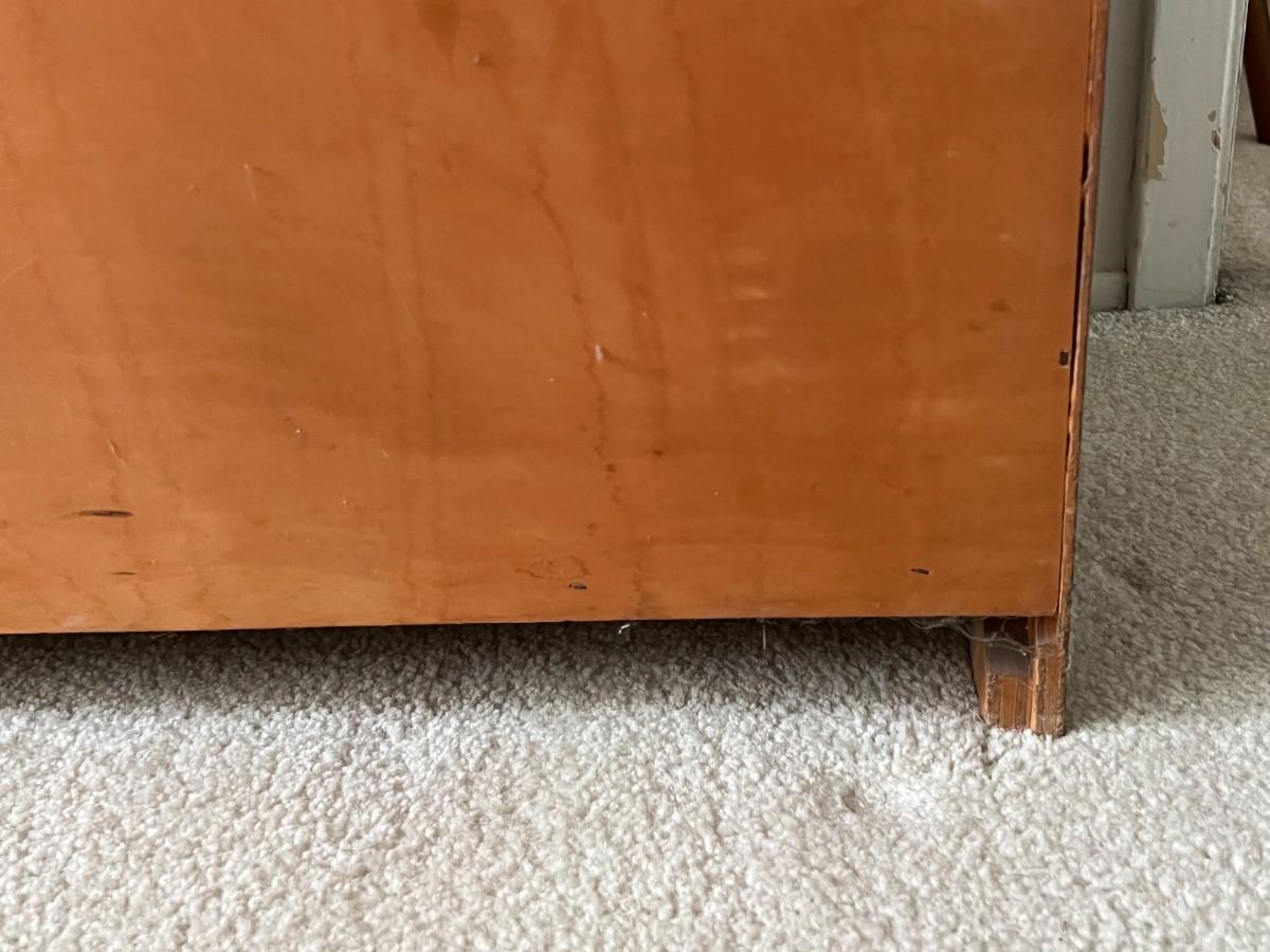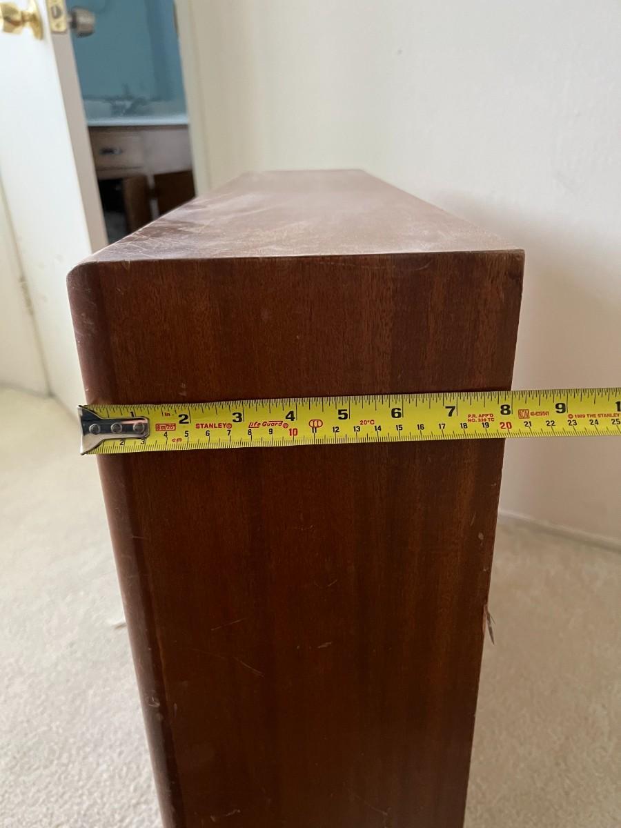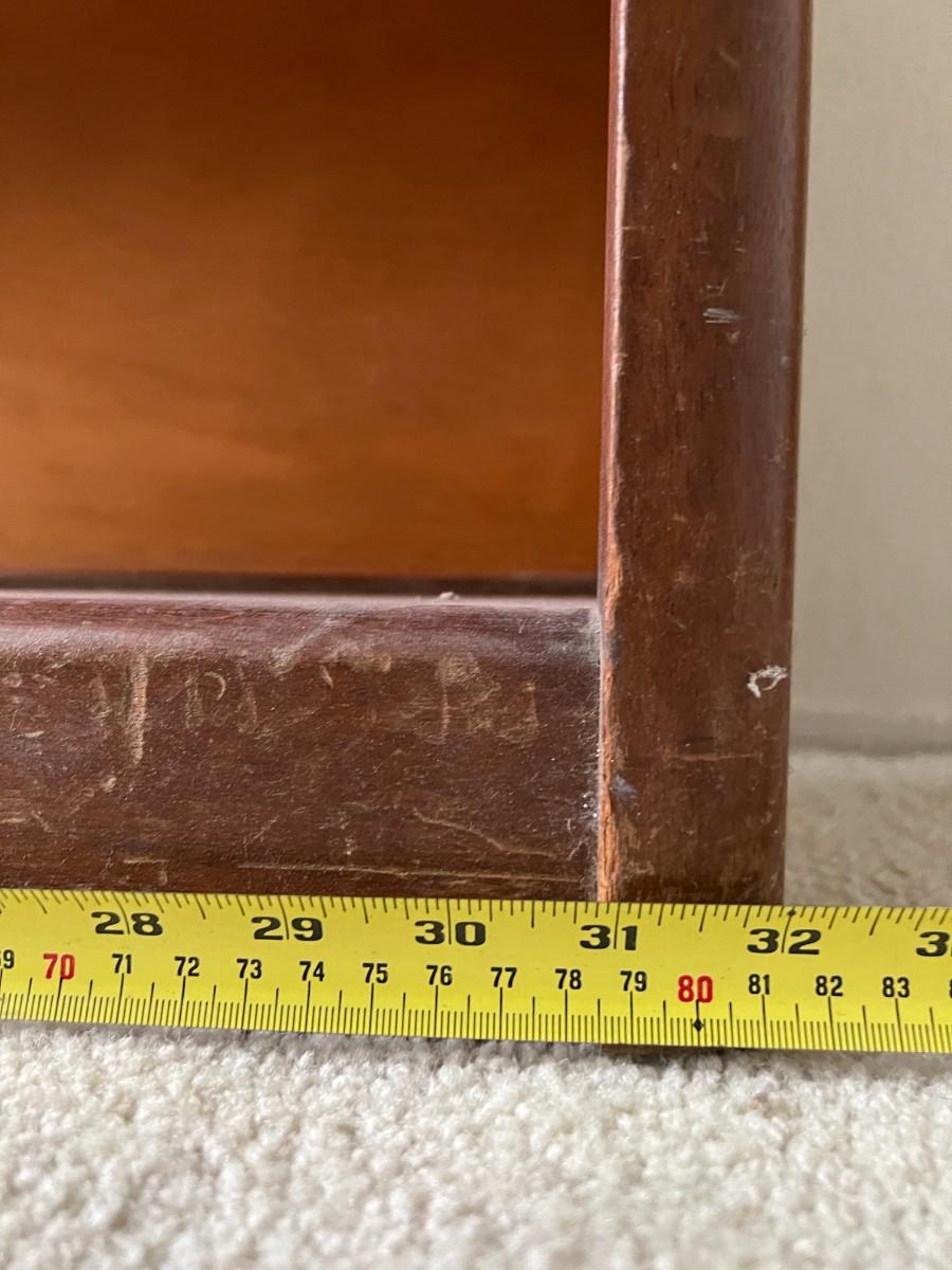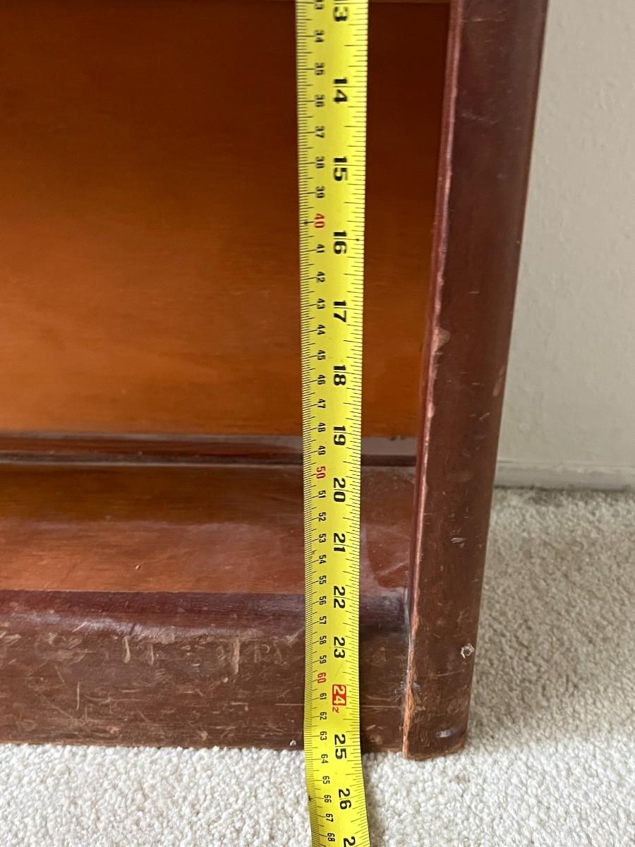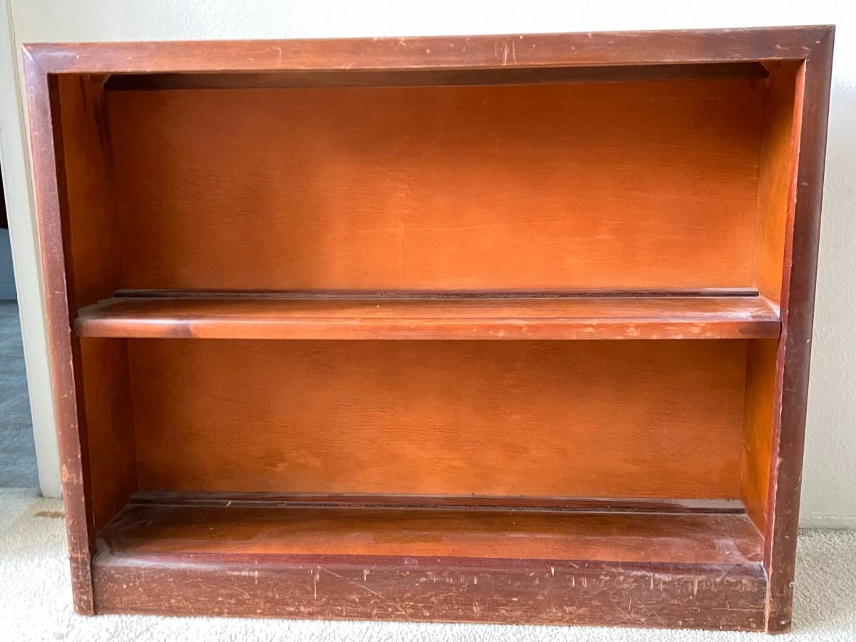 There is wear to the shelf, but there is no significant damage and is in overall fair condition. Check pictures for more details and for sizing.