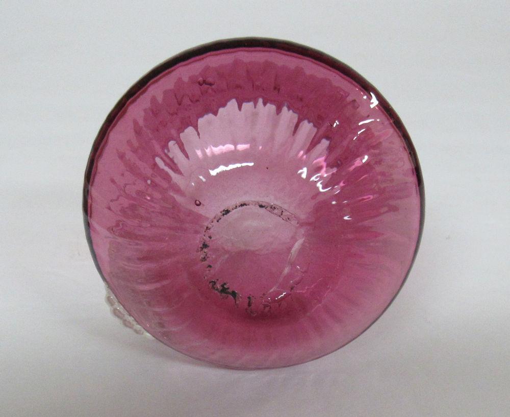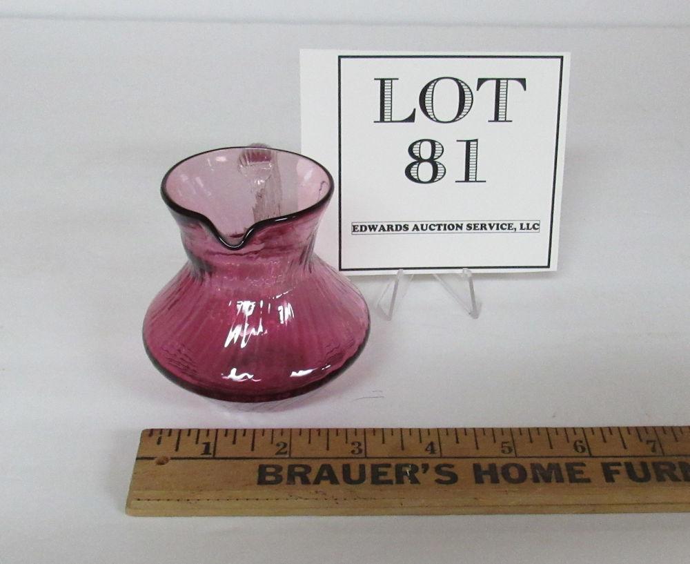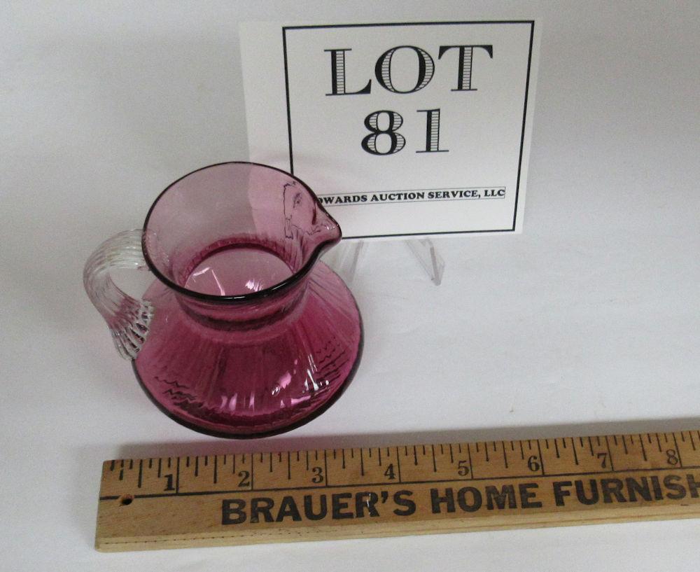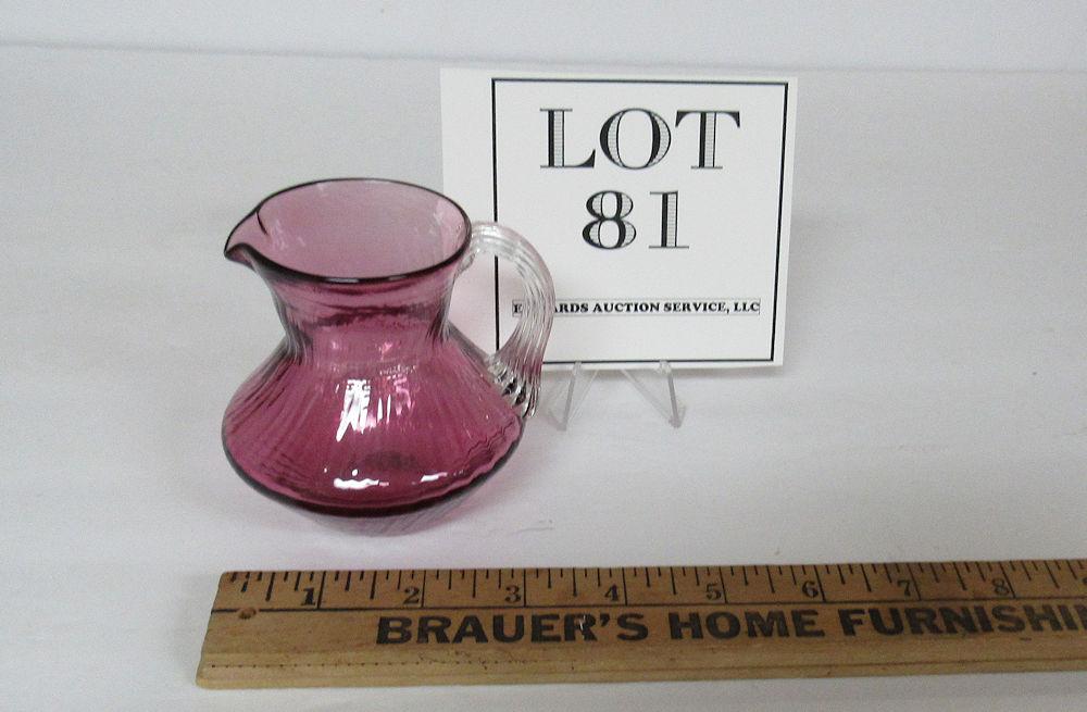 Small Ribbed Cranberry Glass Creamer Clear Ribbed Handle
