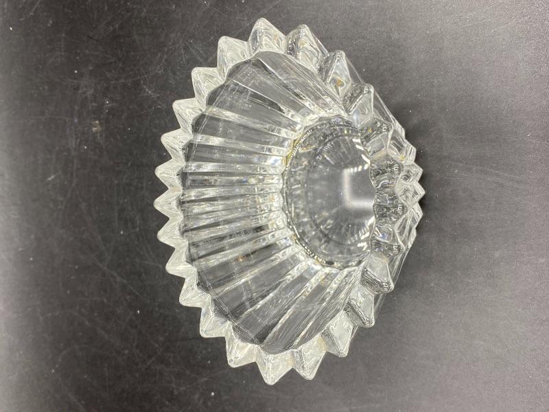 Small glass trinket dish. Ribbed with saw tooth edge. About 4" size.