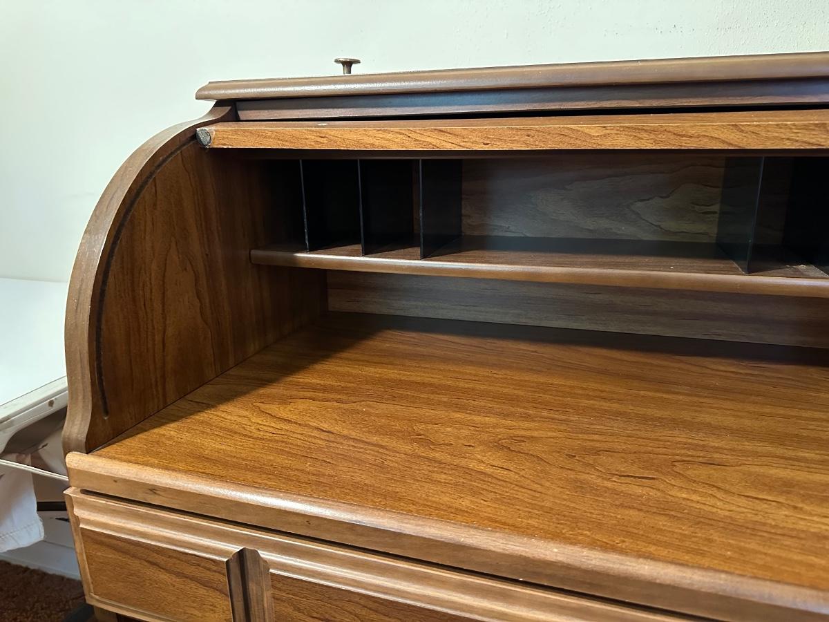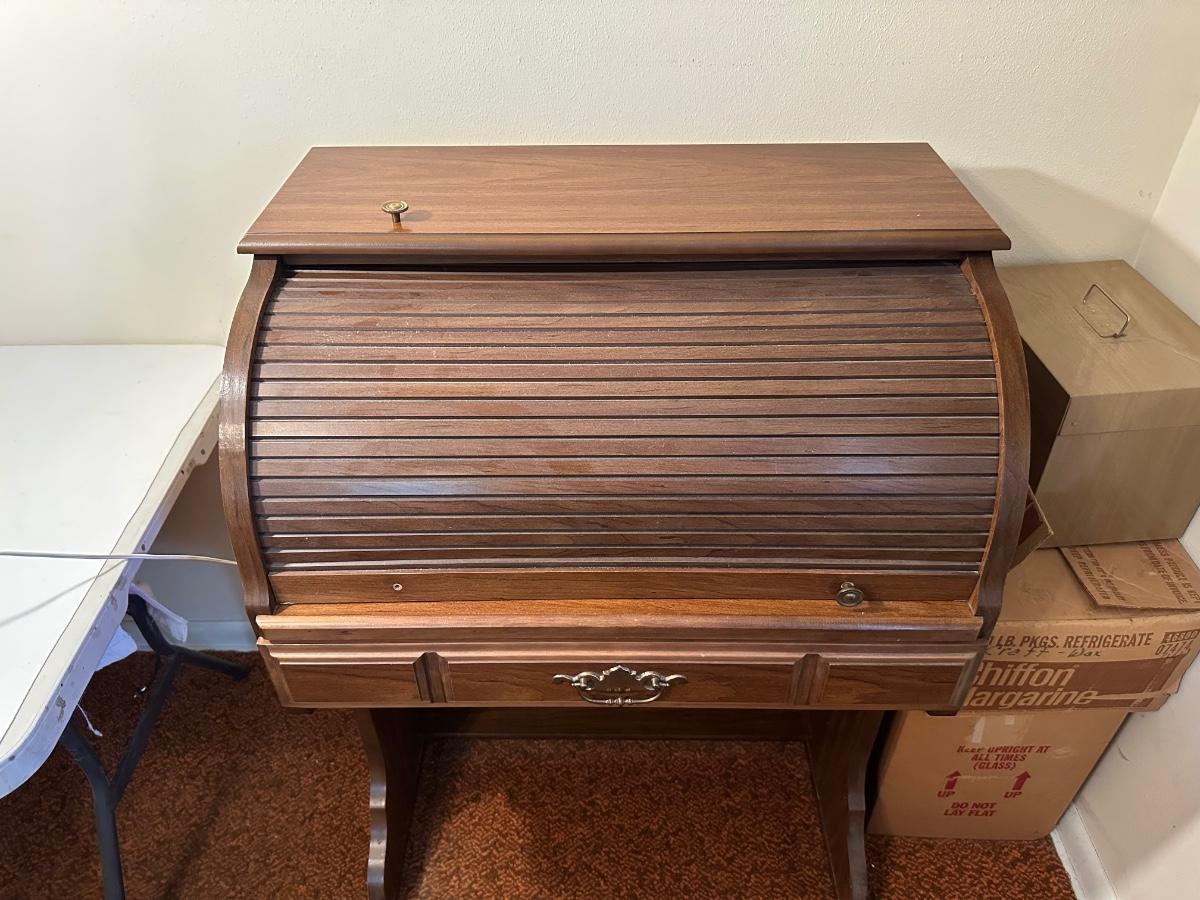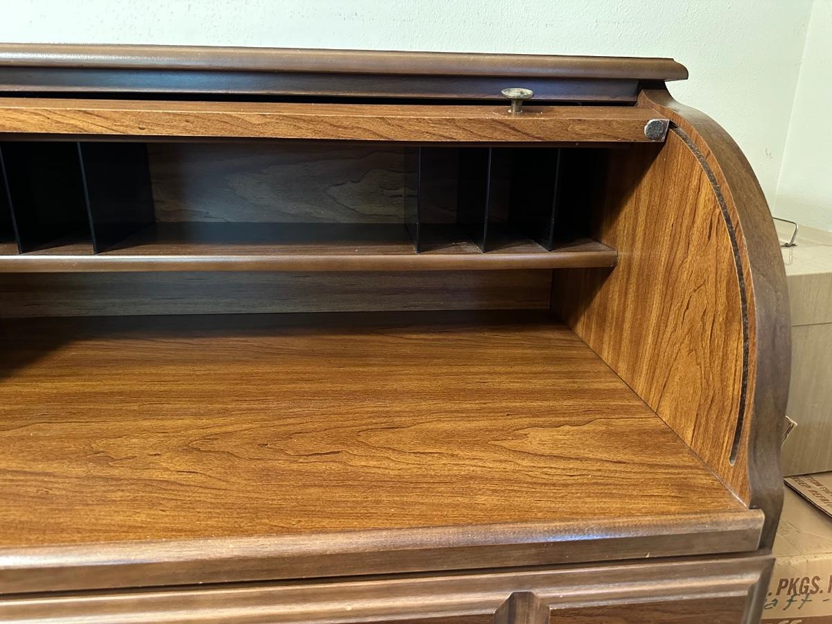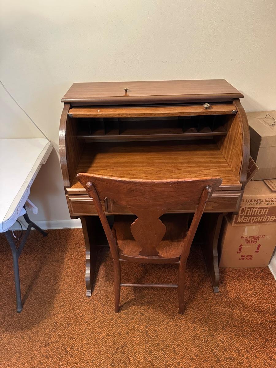 DMI SMALL ROLL TOP DESK WITH ANTIQUE CHAIR