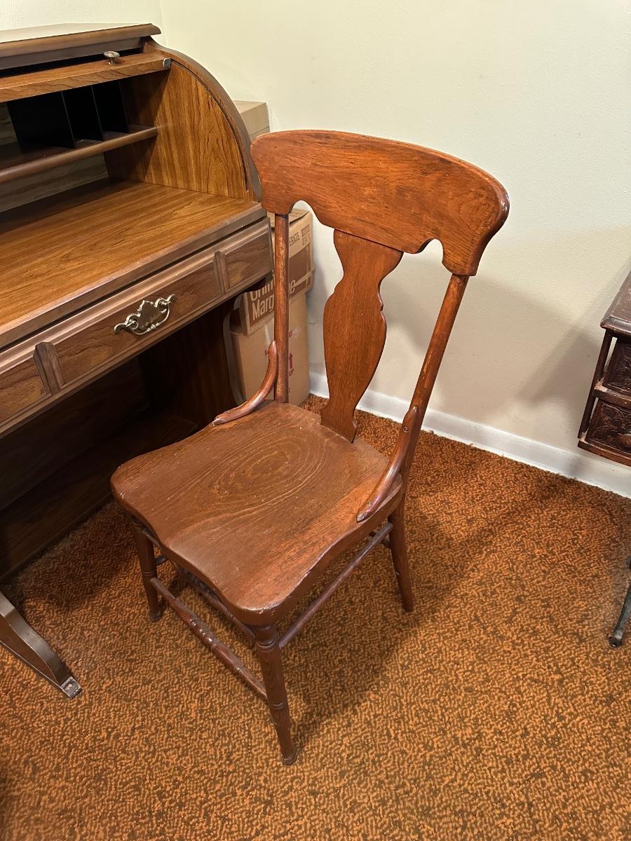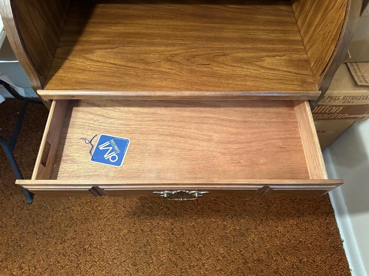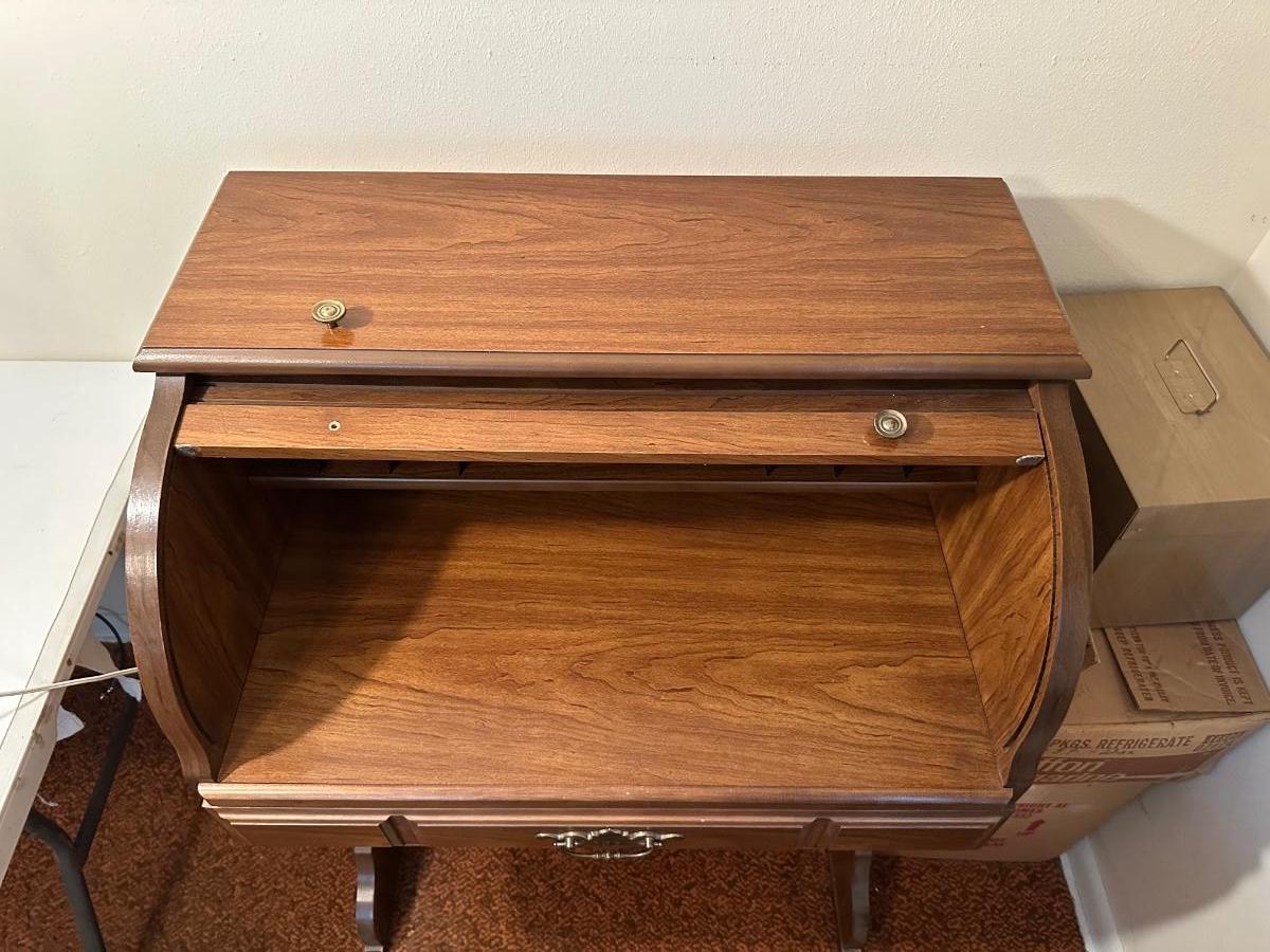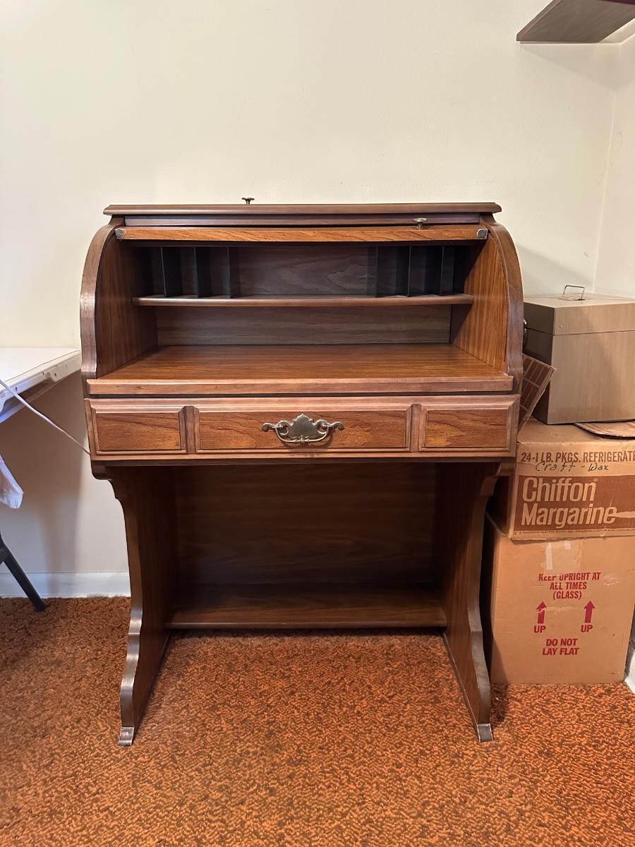 DMI SMALL ROLL TOP DESK WITH ANTIQUE CHAIR