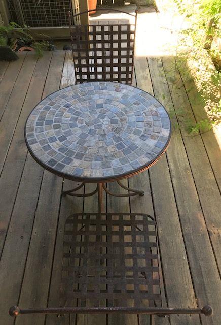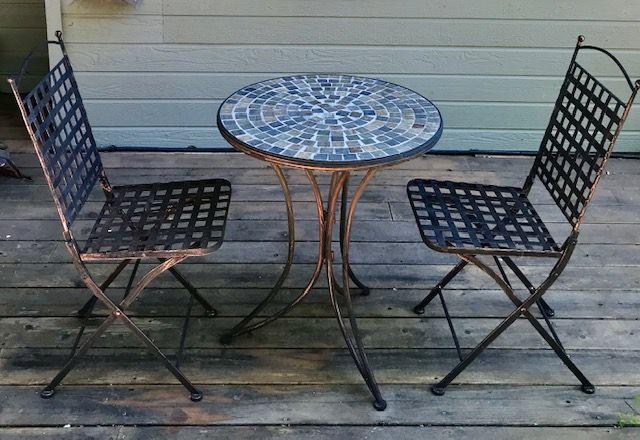 Small Round Mosaic Patio Table & Two Chairs. Local pick up only in Auburn, CA.