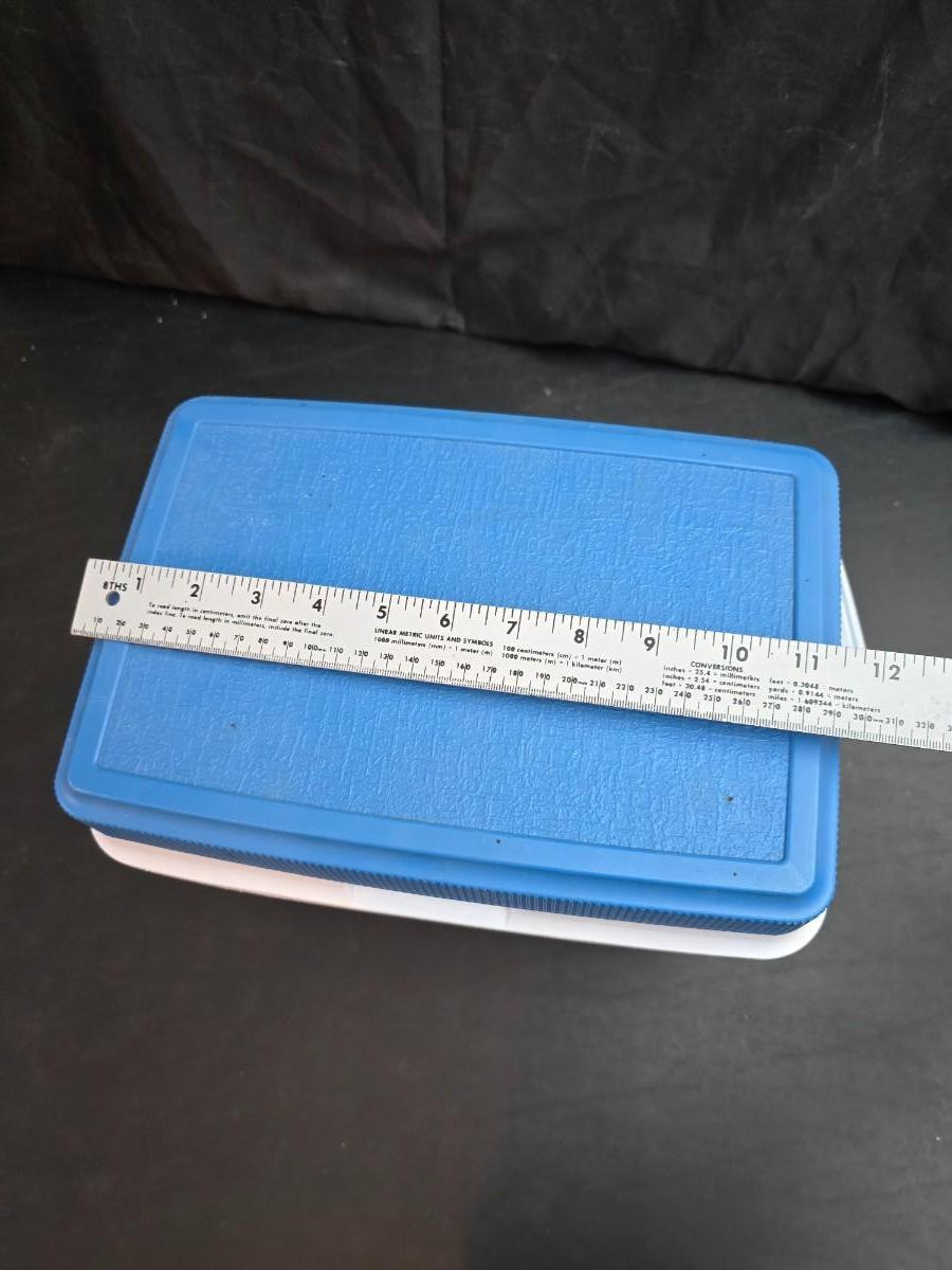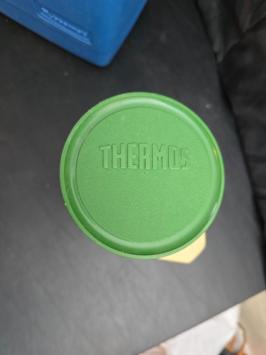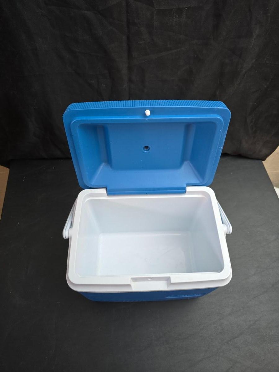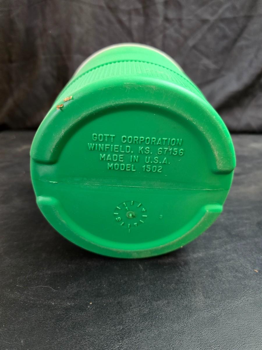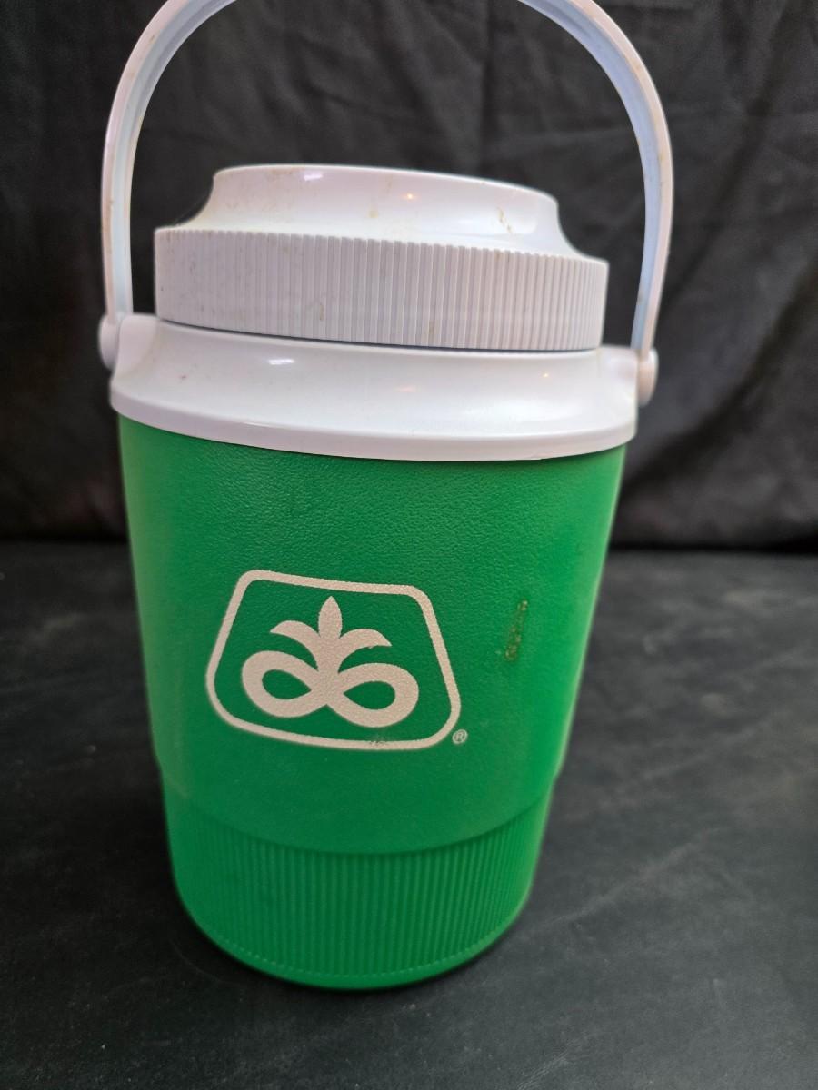 Small Rubbermaid cooler with a Gott water cooler and a thermos