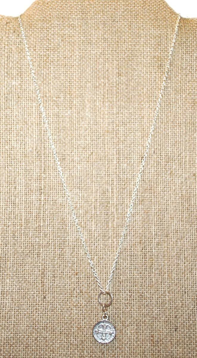 Small Saint's Medal Style PENDANT (¼" Diam.) on a Silver Tone Necklace Chain 18" L