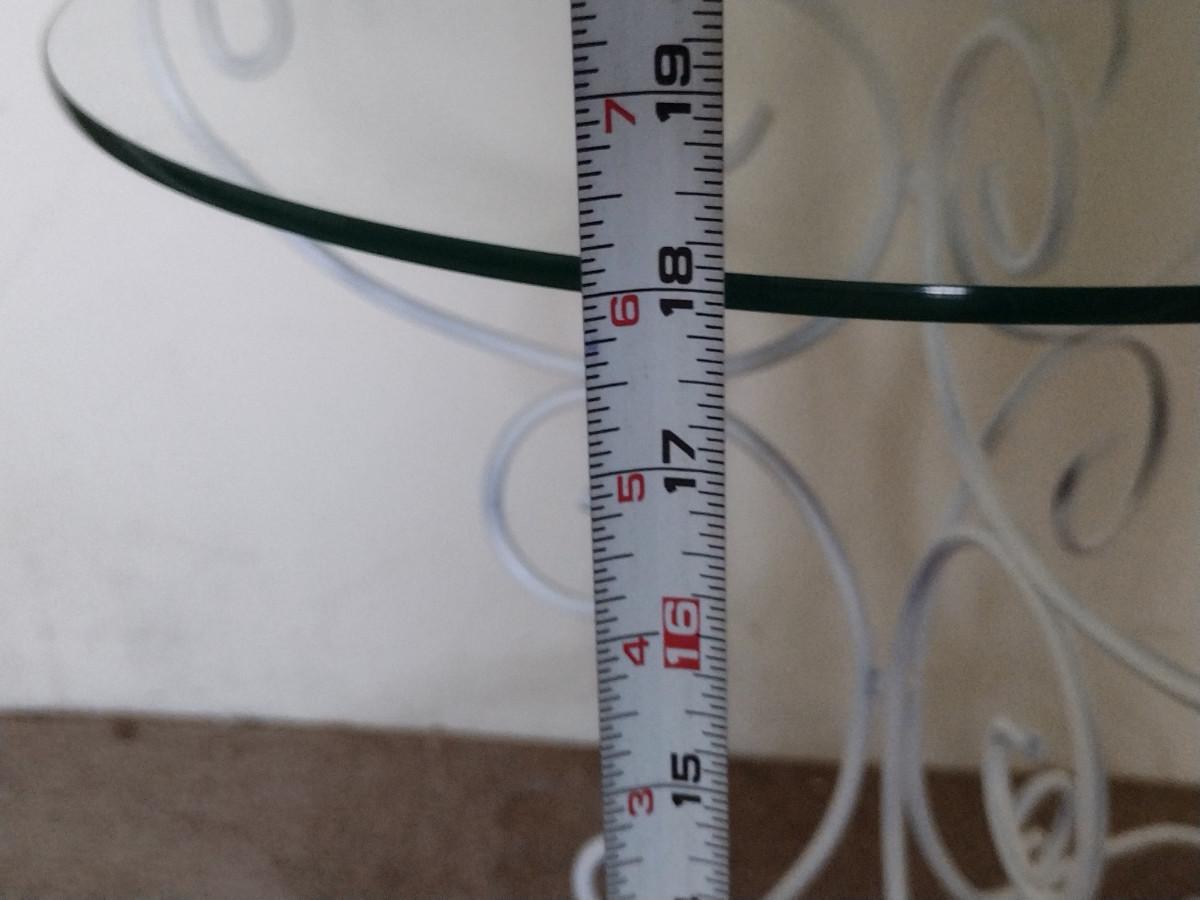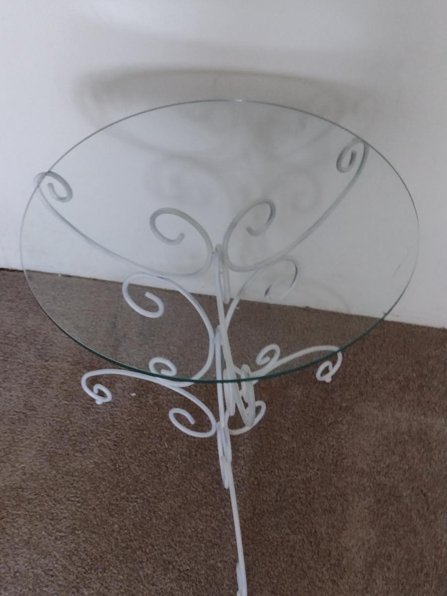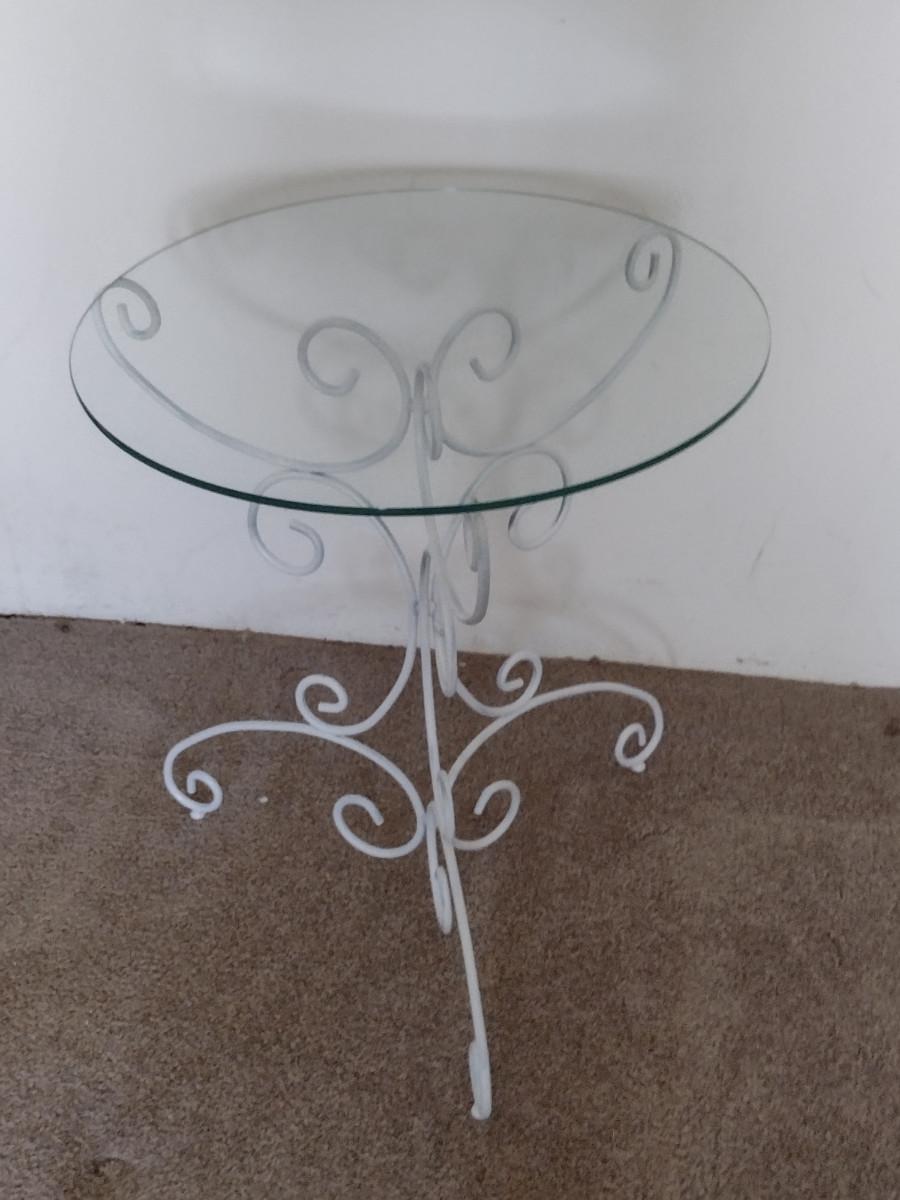 Small, Scroll Design Metal Wire Accent Table with Glass Top- Approx 16 1/2" in Diameter, 18" Tall