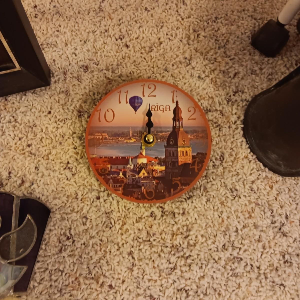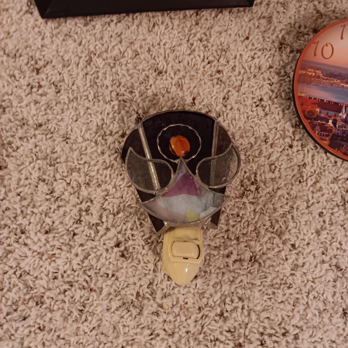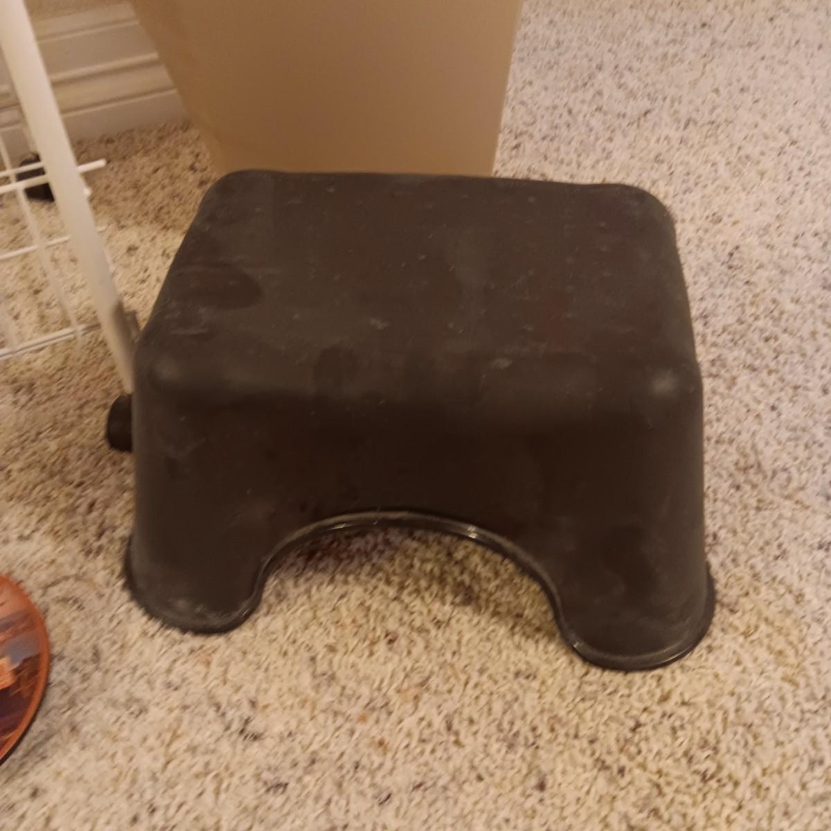 SMALL SHELF ON CASTERS, BAROMETER, CLOCK, TRASH CAN, STEP STOOL & SUNGLASSES