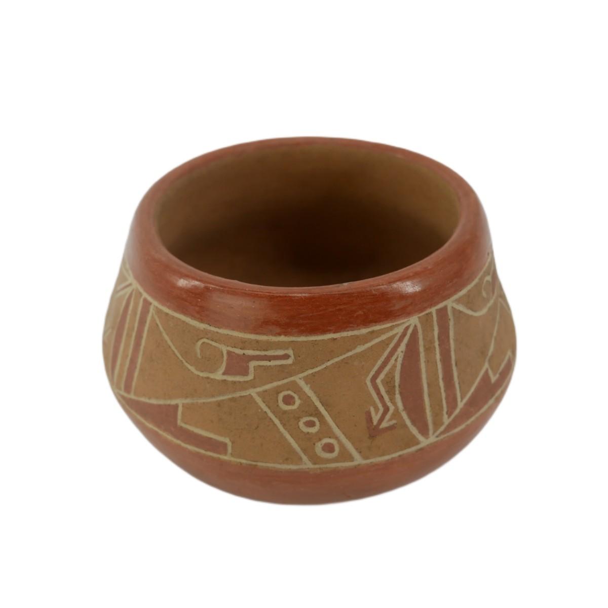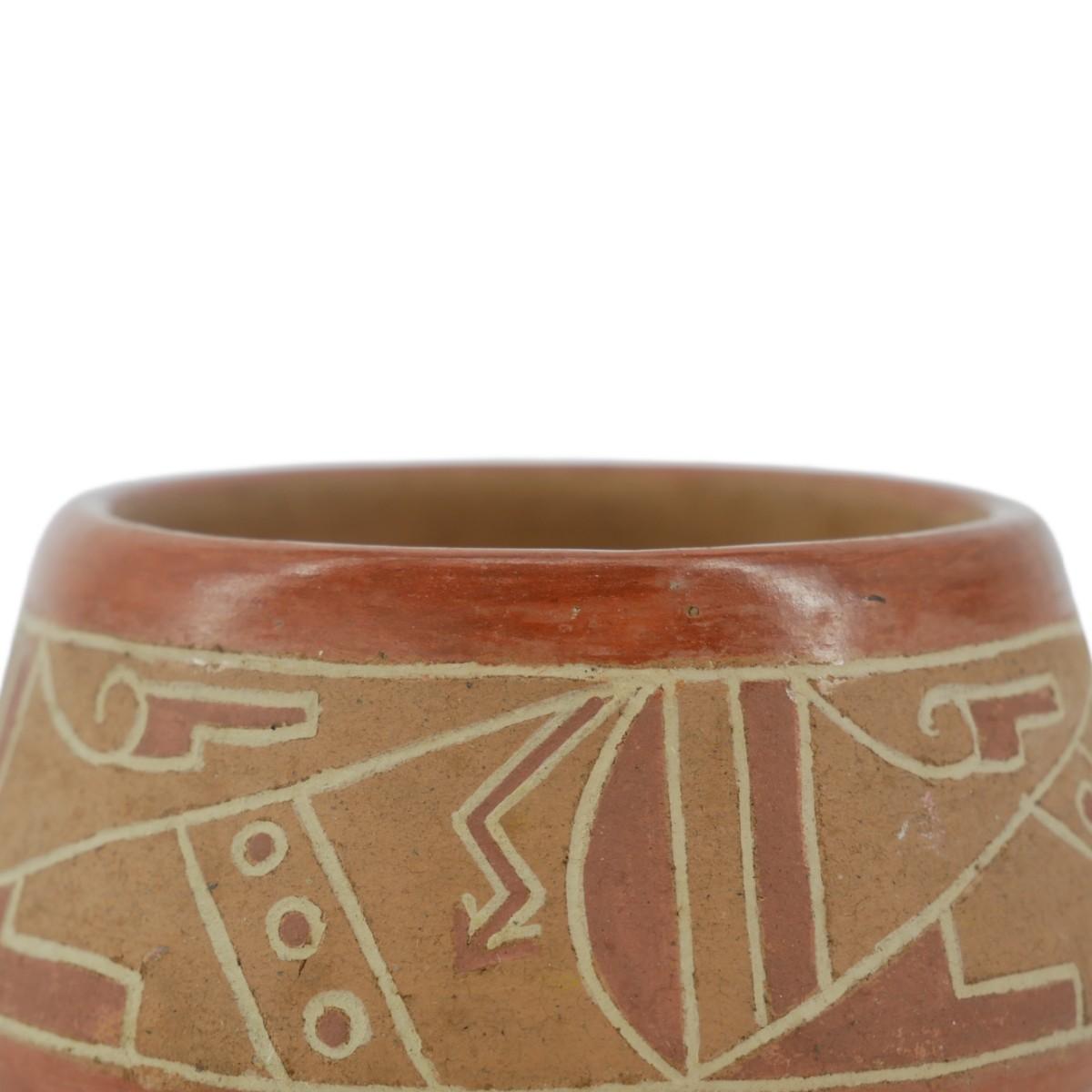 Small handmade Native American clay pottery vase pot, signed on bottom in pencil. Superb condition! Measures approximately L 4" x H 2.75". Weighs 9 oz. (C109)