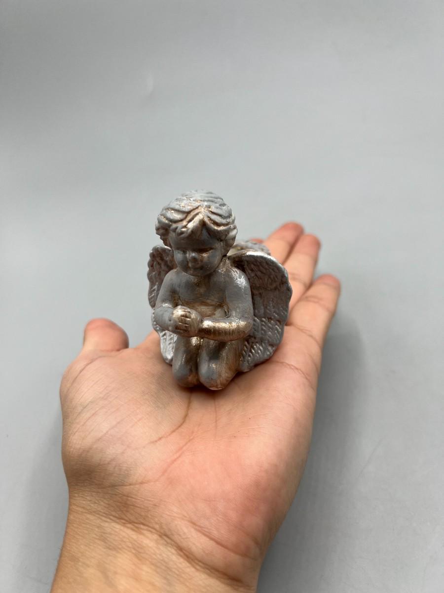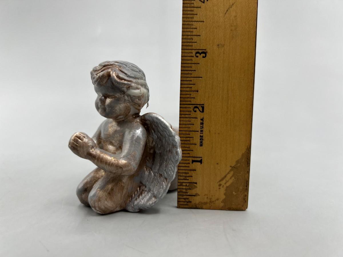 Small Silver Painted with Faux Patina Angel Kneeling Praying Miniature Candle Holder. In good condition. Under 3" size.