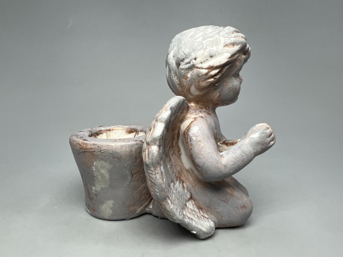 Small Silver Painted with Faux Patina Angel Kneeling Praying Miniature Candle Holder