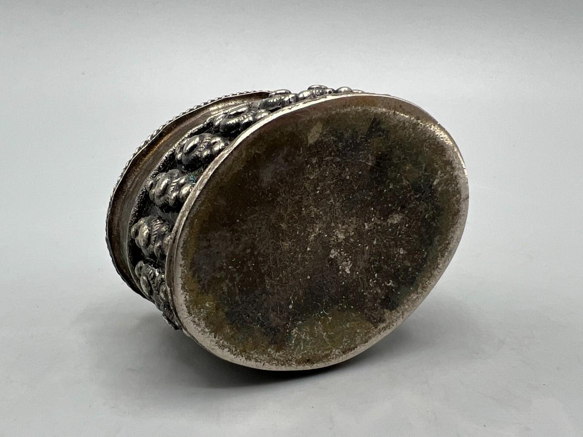 Small Silver Plate Lidded Trinket Box with Polished Agate Accents