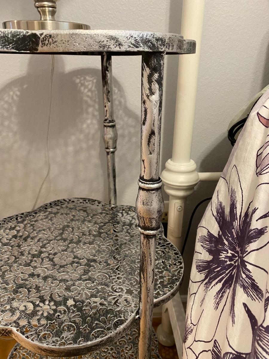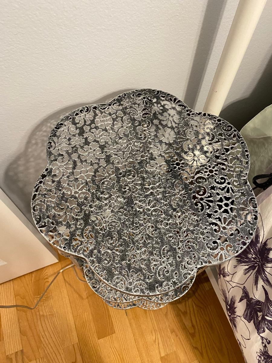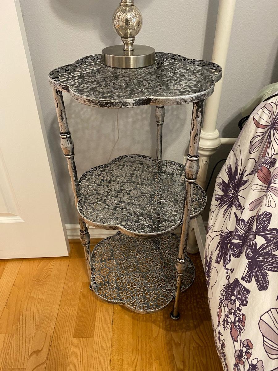 Small Silver Tone Metal Tiered Side Table Nightstand