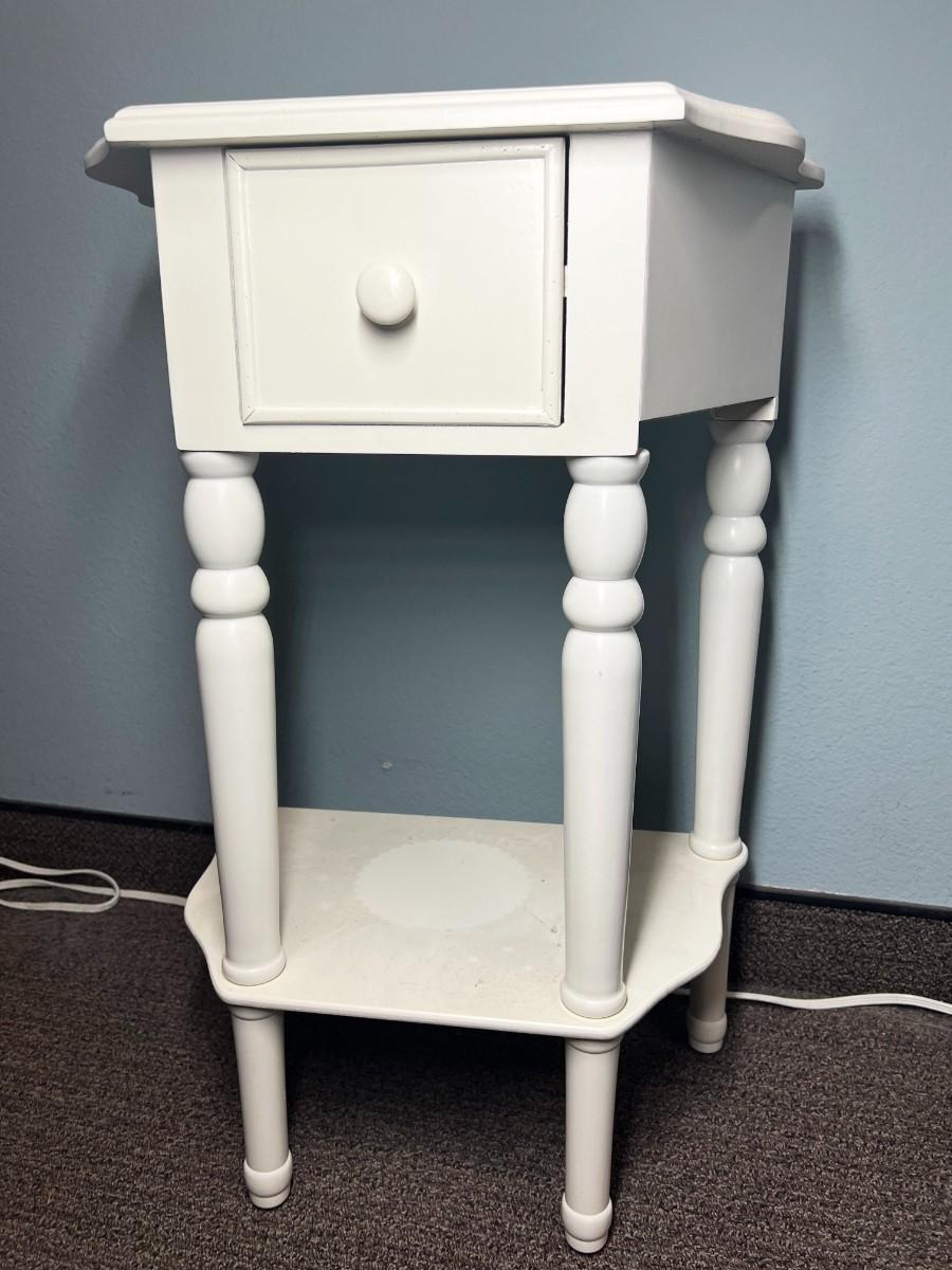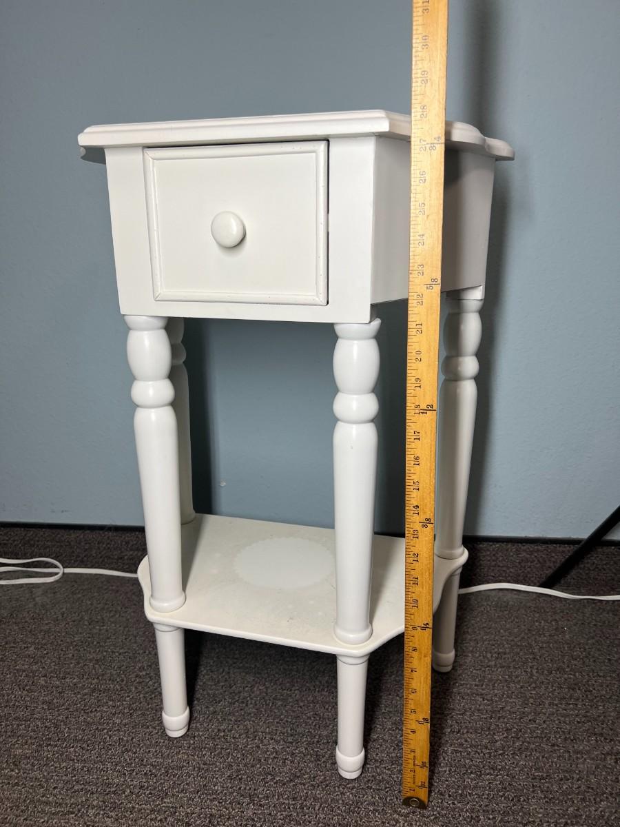 Small Single Drawer Narrow Side Table Nightstand. In good condition. 28" tall.
