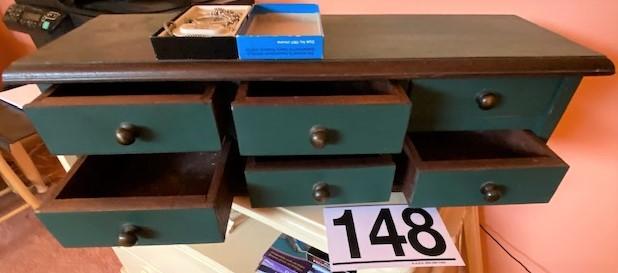 LOT#148: Small Six Drawer Storage Chest w/Vintage Sears Stopwatch