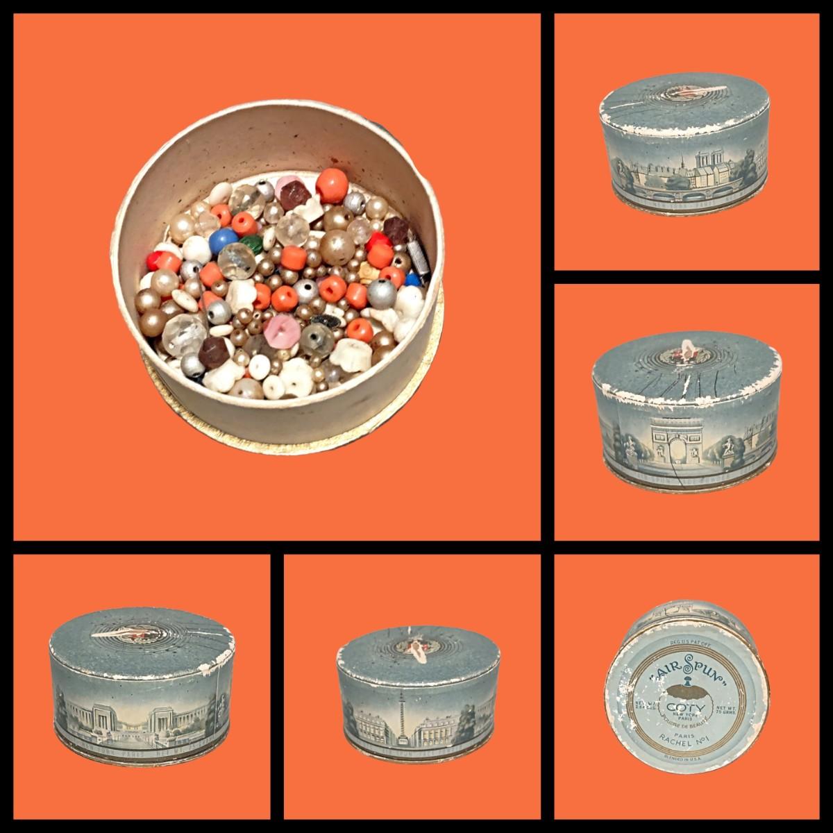 7. Vintage Cardboard Coty Air Spun Beauty Powder Cosmetic Box of Beads (Visible wear on outside of cosmetic box. Please see photo)