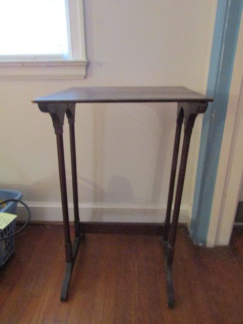 Small, Solid Wood Table. Needs tightening. Approx 16" x 14" x 27"