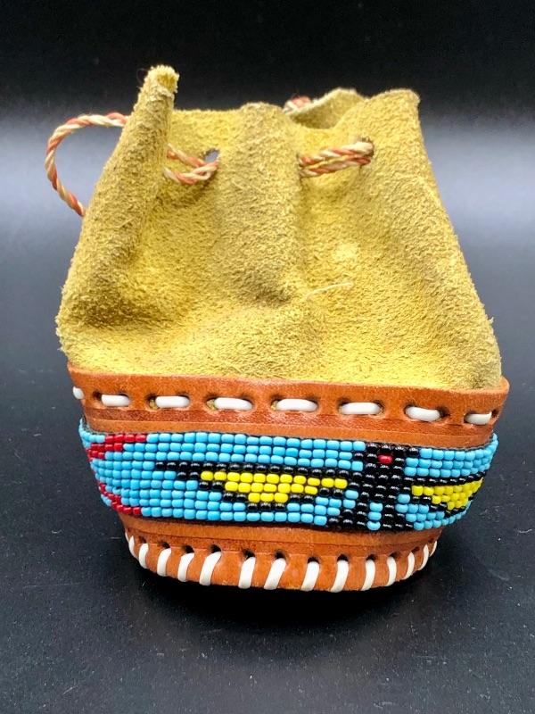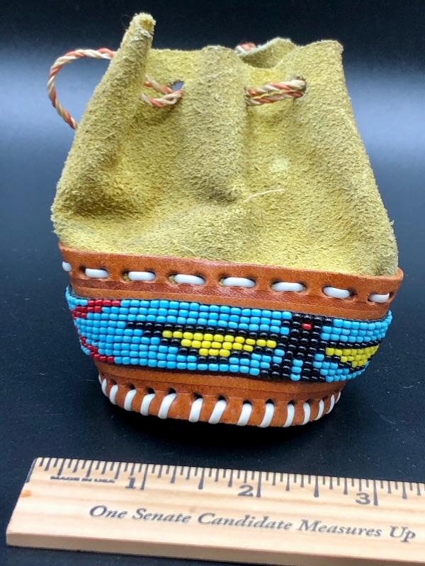 Small leather pouch. Southwestern beaded design. Looks like it may have been a vacation souvenir.