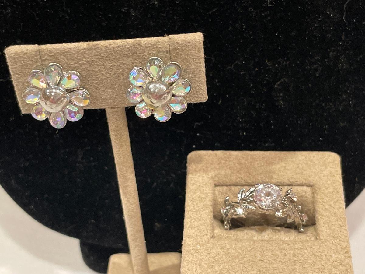 Small sparkly clip ons and ring
