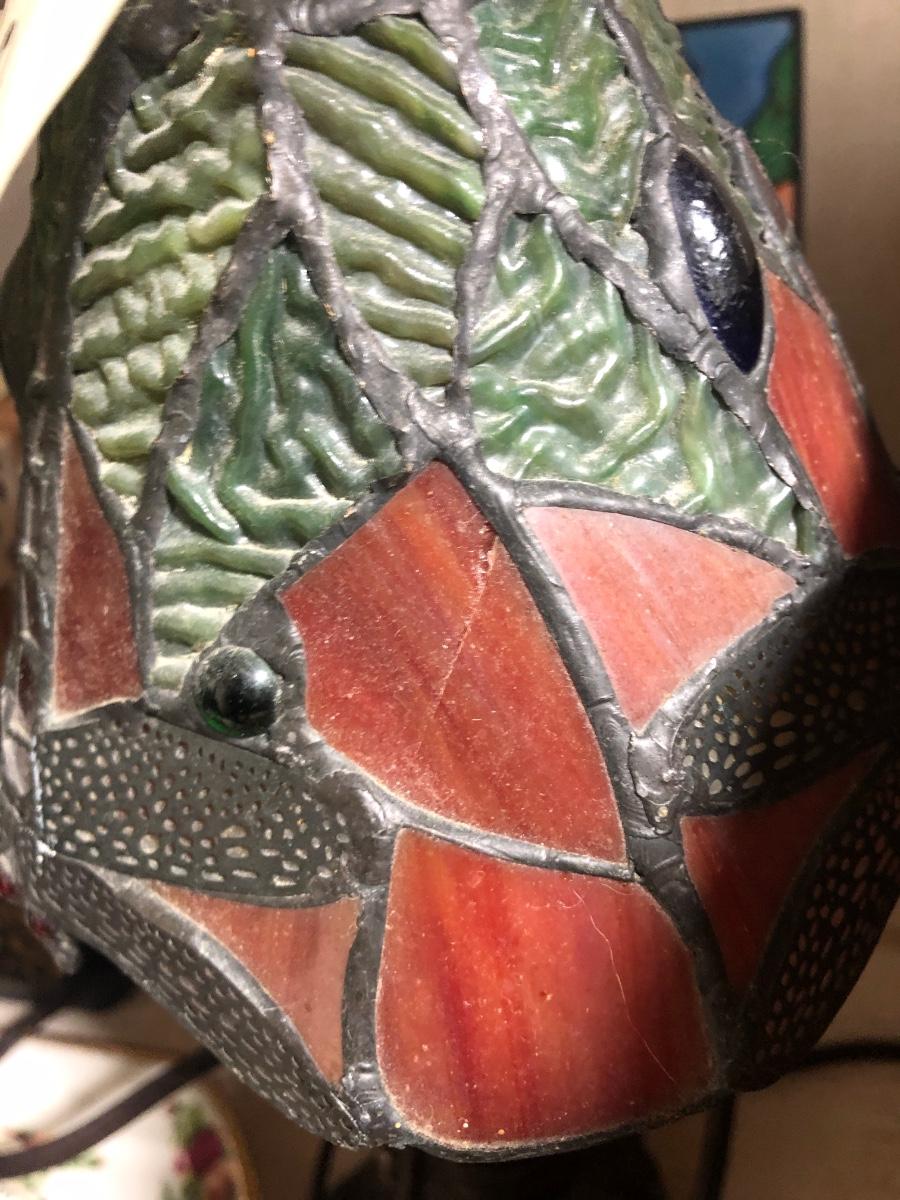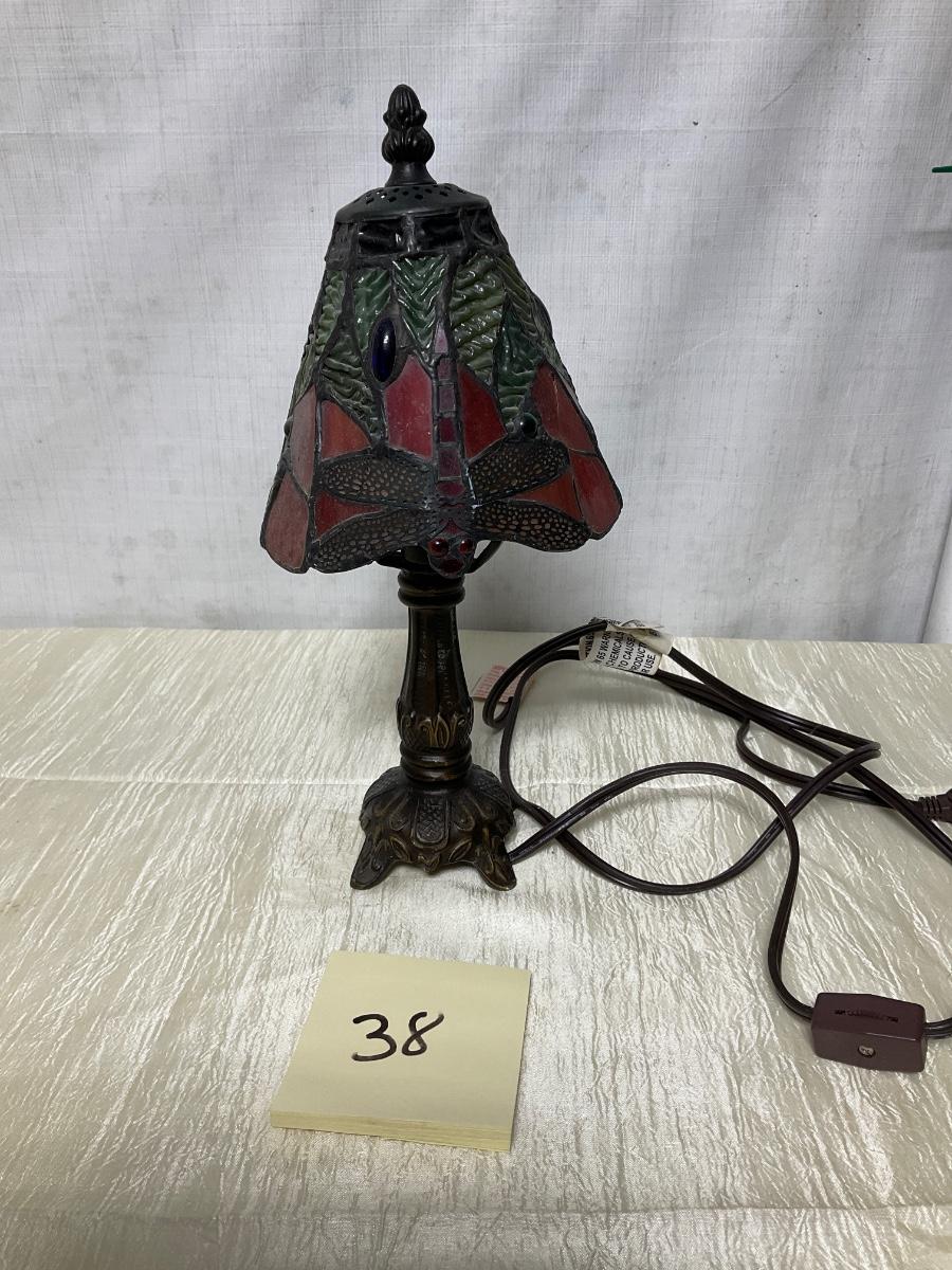 Small stain glass metal lamp about 12 inches tall has a small crack see photo