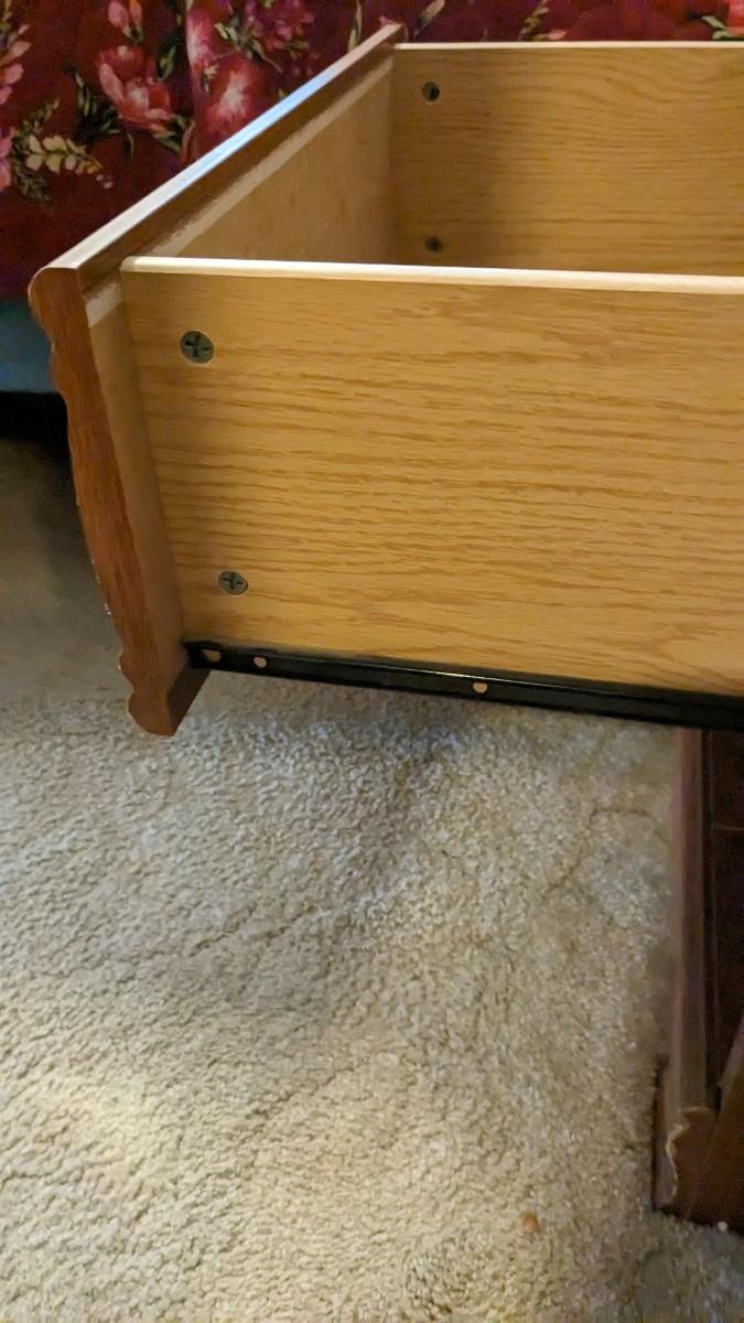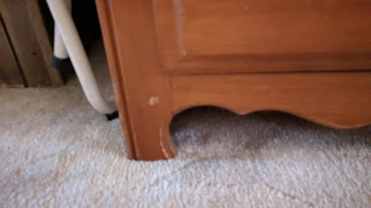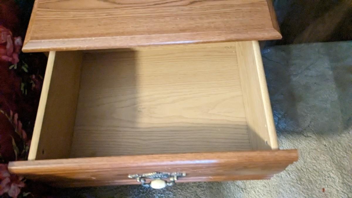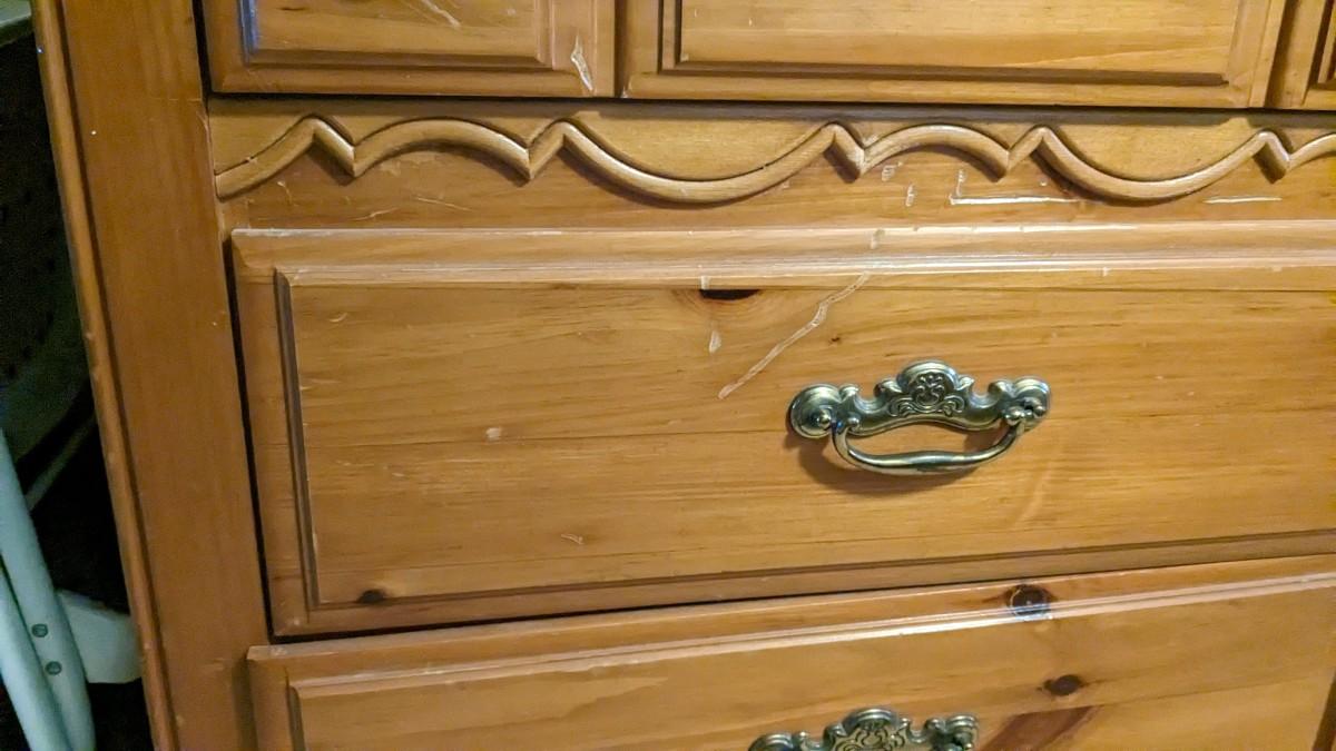 2 pieces, 3 drawer piece is 30"x18"x29.75" by Lea Furniture. The other is a small 20 5/8"x15.75"x21" unmarked piece. Both in great shape with a ton of life and use left!