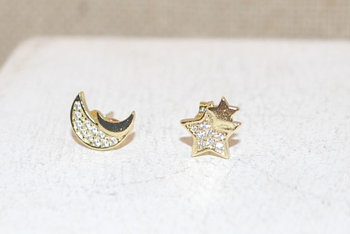 Small "Stars & Moon" Earrings Set (½") with a Stud Style Clasp