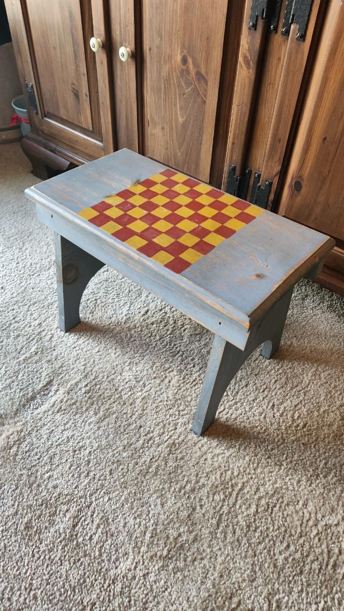 Small Step Stool Bench with Checker board 17'x9" 12"H