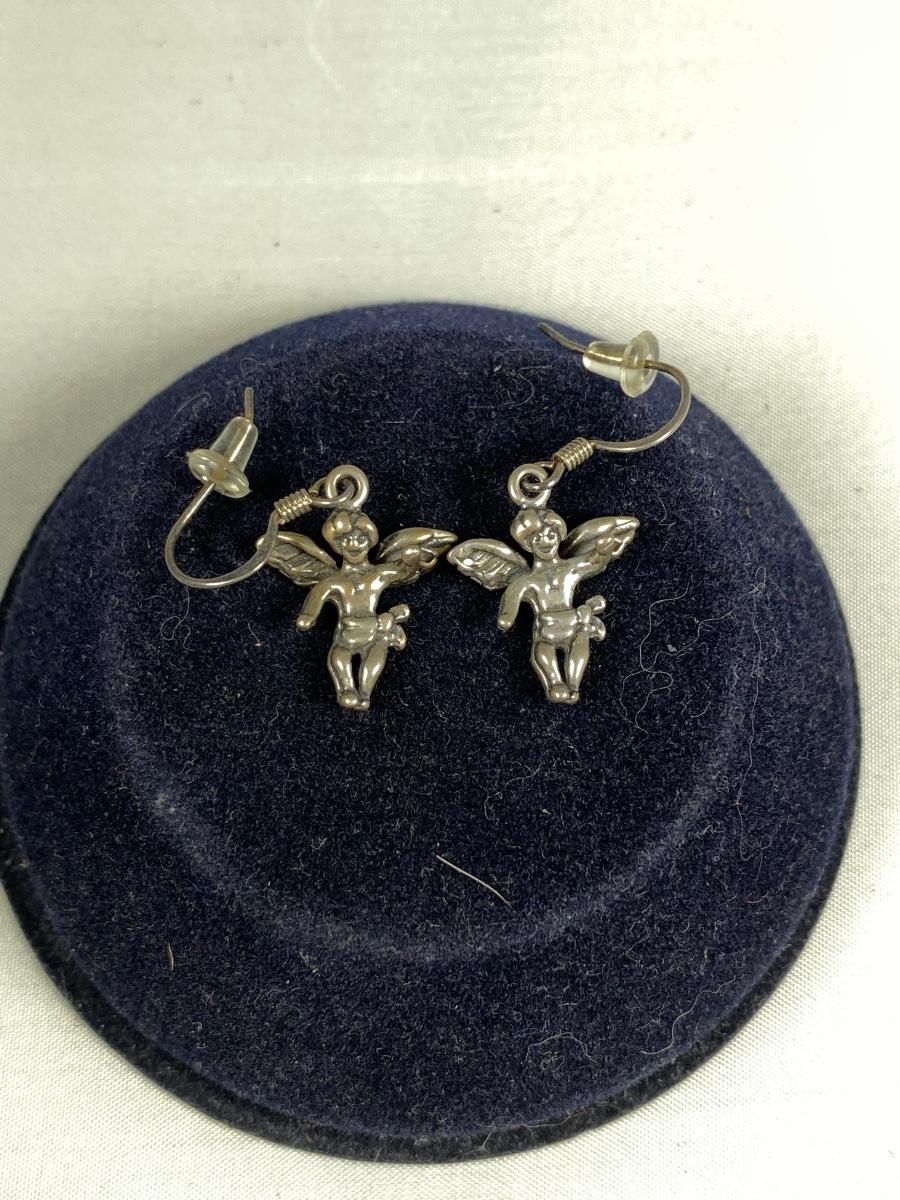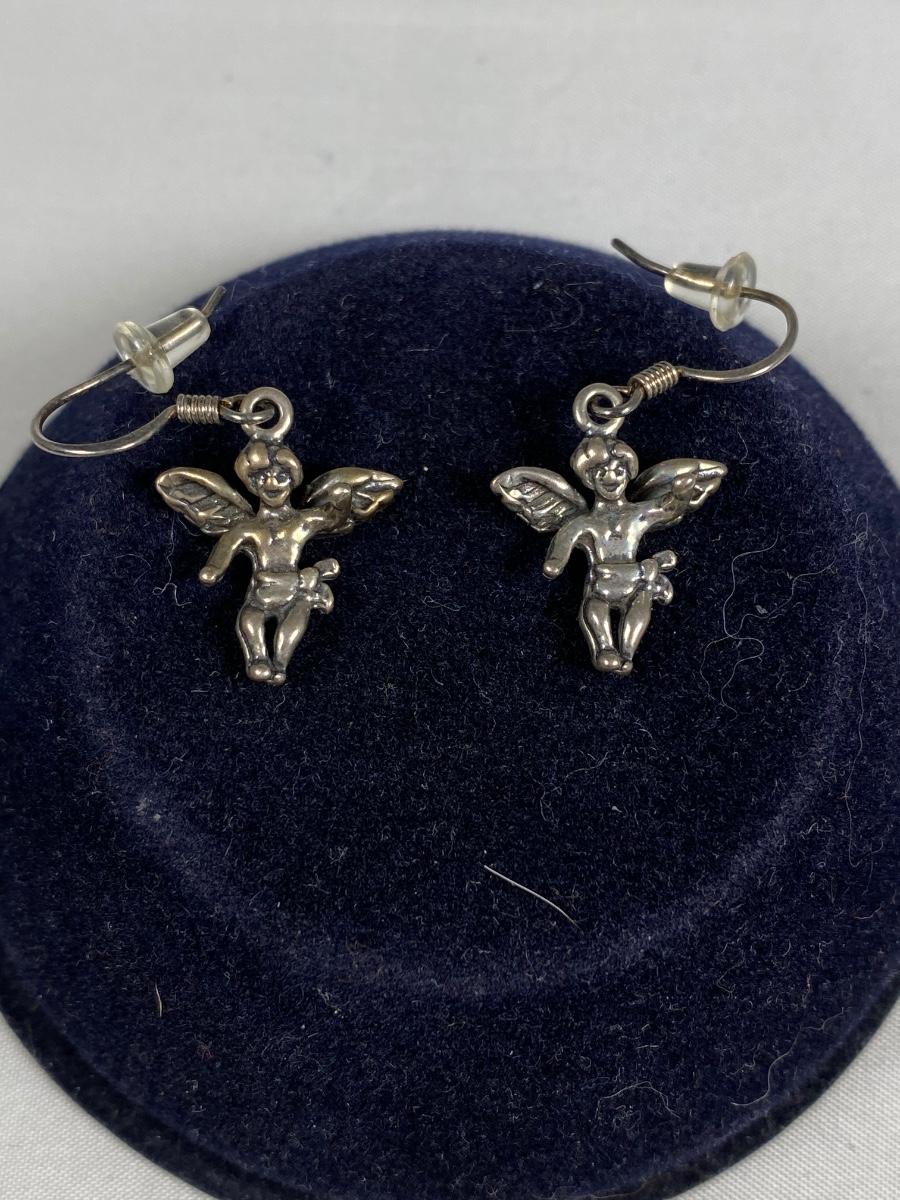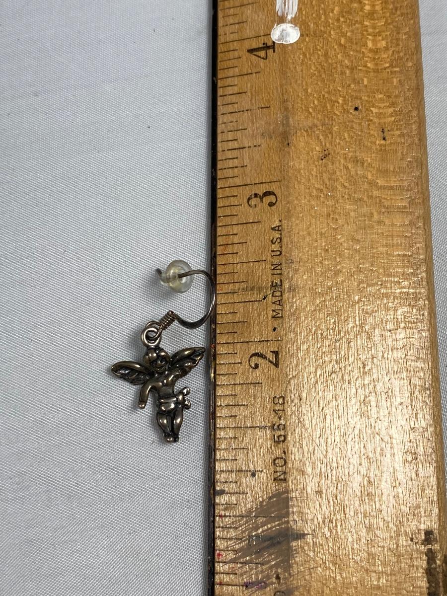 Small sterling silver cherub earrings. Marked sterling on the back. Under 1" size.