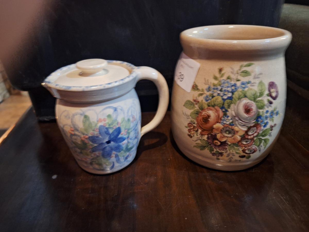 small stoneware crock and pitcher