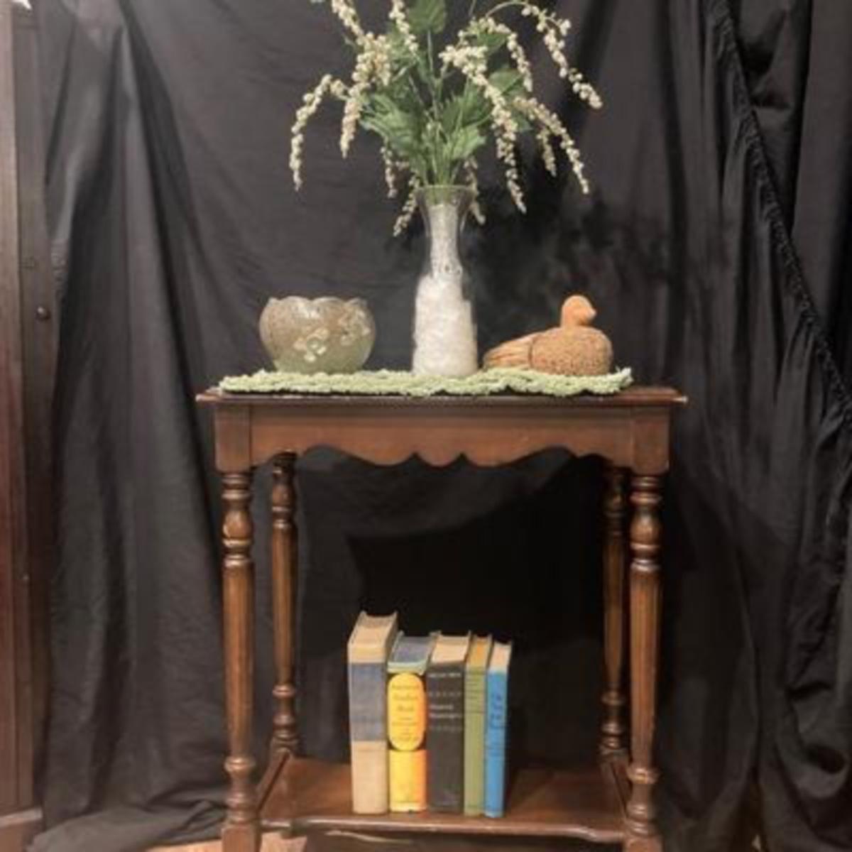 All you see in pictures including solid wood possibly antique table, the top is a bit worn.