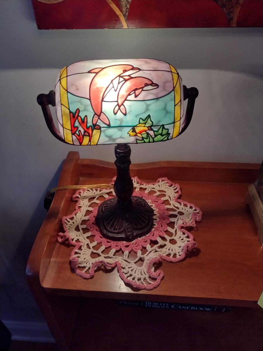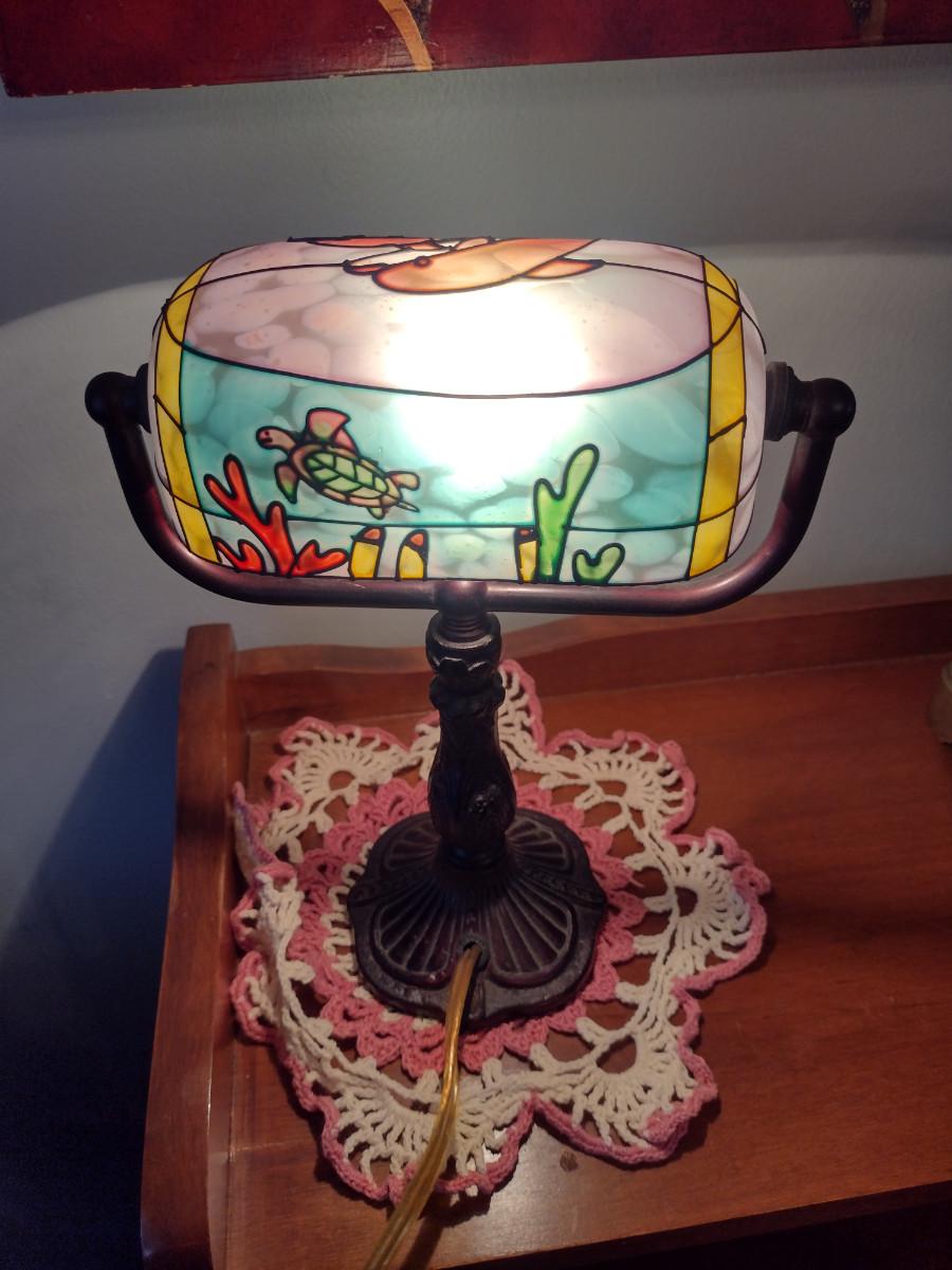 Small Table Top Lamp with Rotating Shade- Ocean Life Design