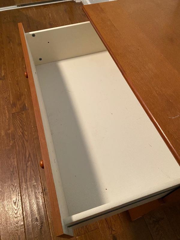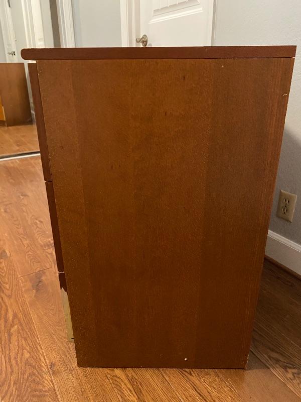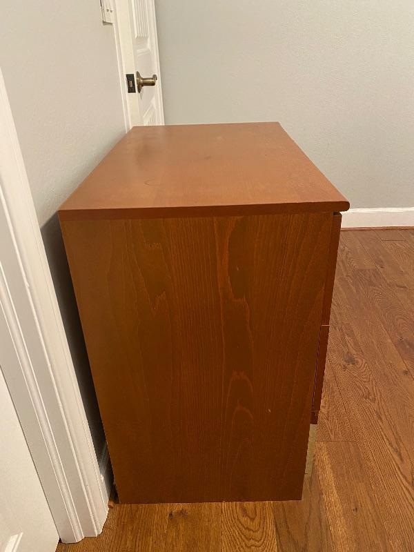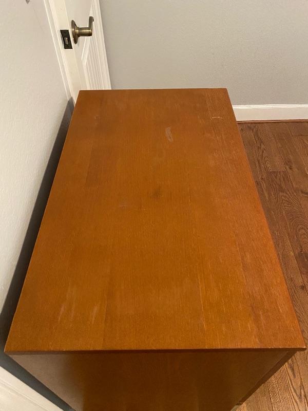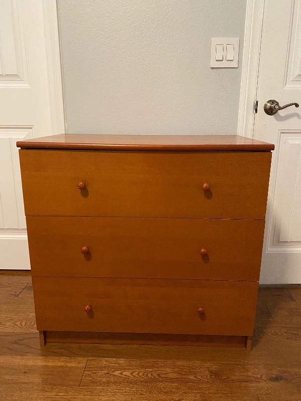 Small three drawer dresser. Good condition. Measures 32lx19wx31t.