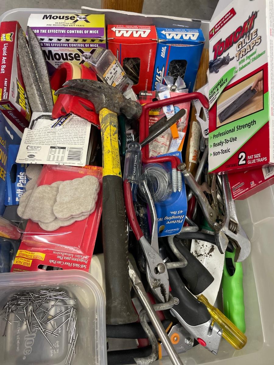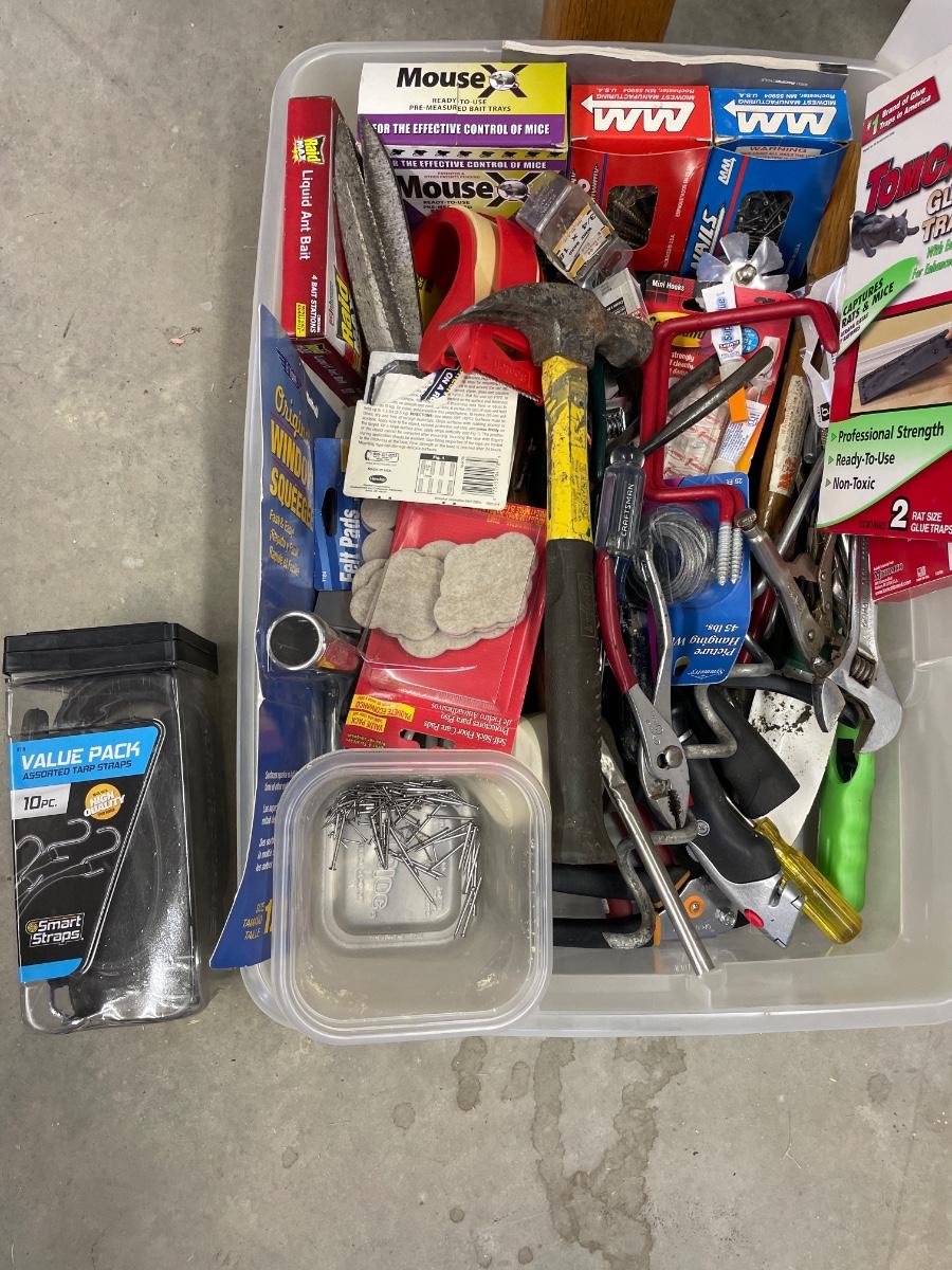 Small tote of tools and hardware