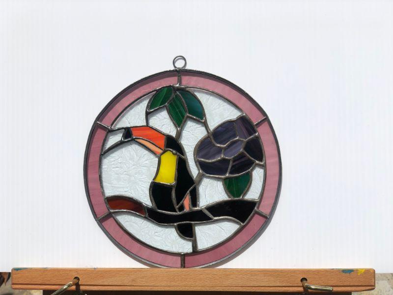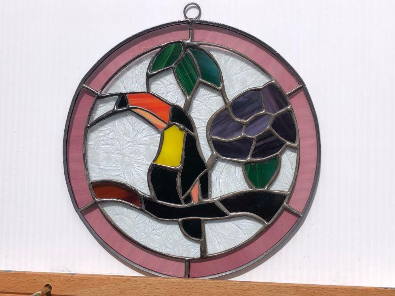 Small Toucan Bird Stained Glass Circular Window