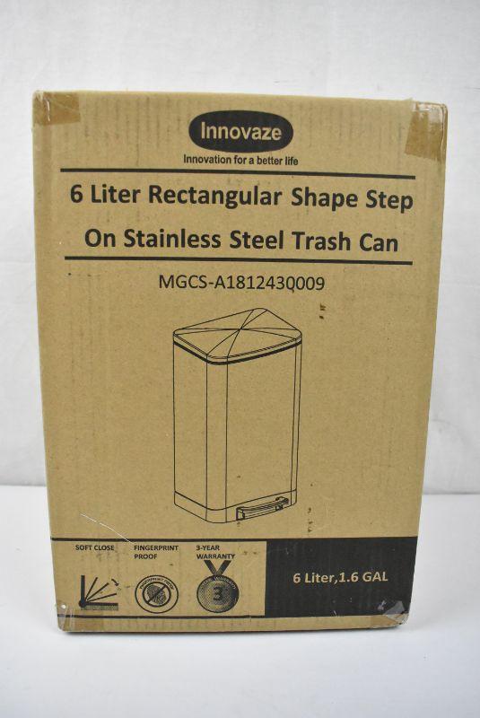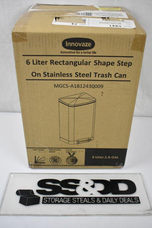 Small Trash Can, Innovaze 1.6 Gal./ 6-Liter fingerprint free brushed stainless steel rectangular step-on - New